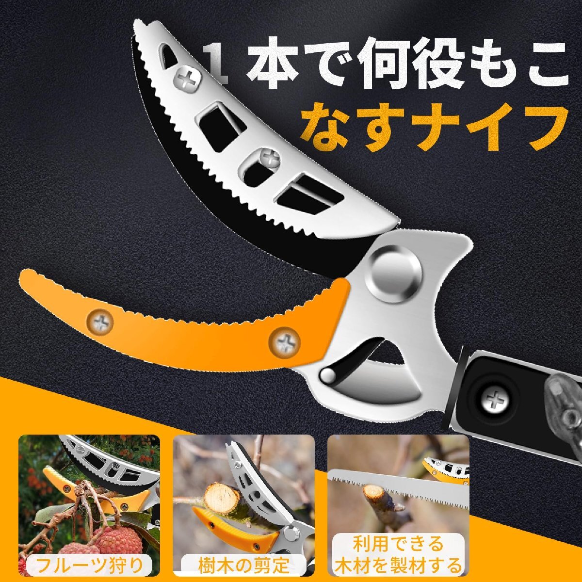 【長持ち】ブレードは酸化テフロン塗装が施しされ、摩耗性高く、錆びることなく、耐腐食で、使用寿命がより高いです。刃先には波形底板が付き、カットするとき、枝を傷つけないでありながら、ブレードの磨耗も減らせます。