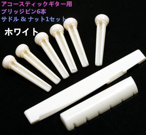 送料無料 アコースティックギター用ブリッジピン サドル & ナットセット ホワイト