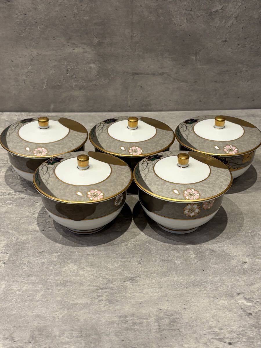 【トレモ】ノリタケ 乃りたけ 錦繍 湯呑 茶碗 金銀彩・桜・紅葉紋 5点セット まとめ売り