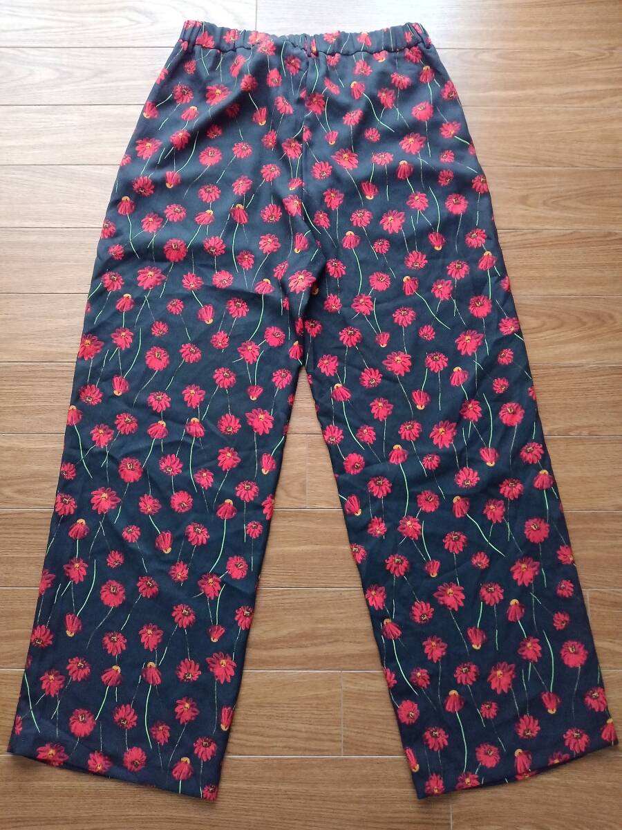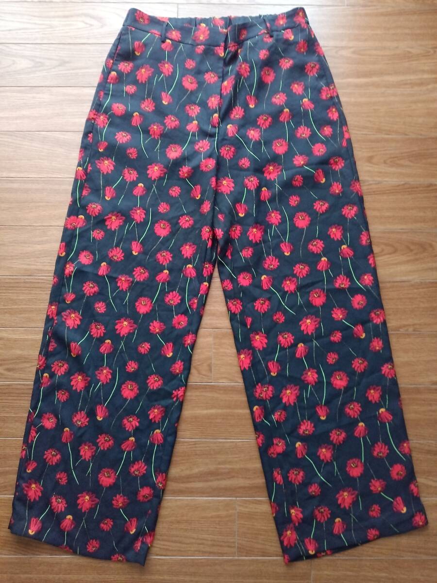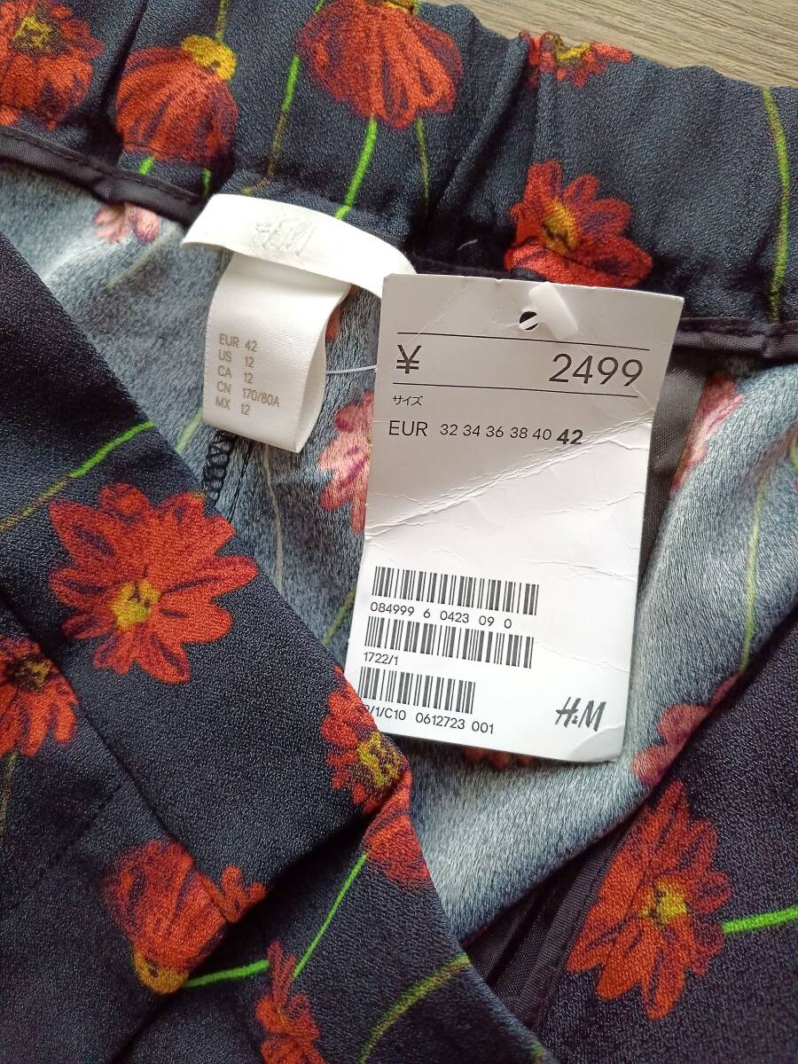 i357 新品未使用 H&M エイチアンドエム 花柄パンツ 42 テロテロパンツ ボトム ボトムス ウエストゴム 楽ちんパンツ リバティーパンツ 黒