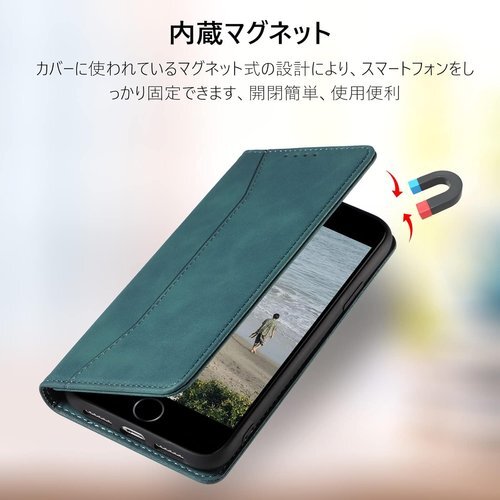 iPhone SE 第2世代/iPhone7/iPho 気 アイホン8ケース手帳型 4.7インチ対応 ターコイズ 123