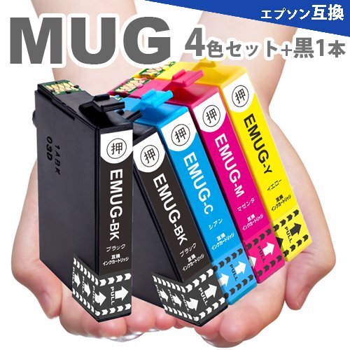MUG-4CL 4色セット + ブラック 1本 エプソン プリンター インク 互換インク MUG-BK MUG-C MUG-M MUG-Y EW-452A EW-052A A18