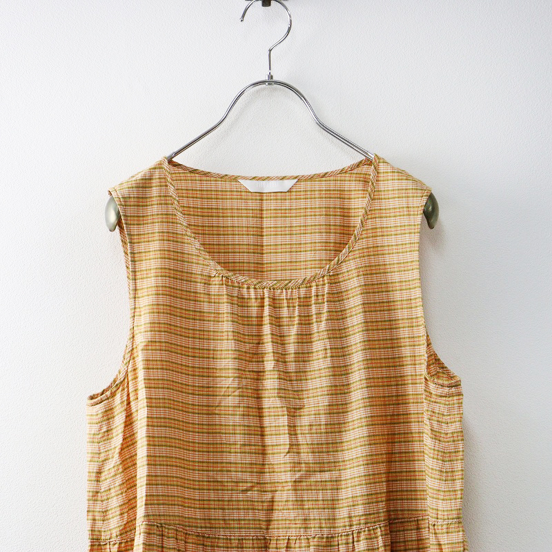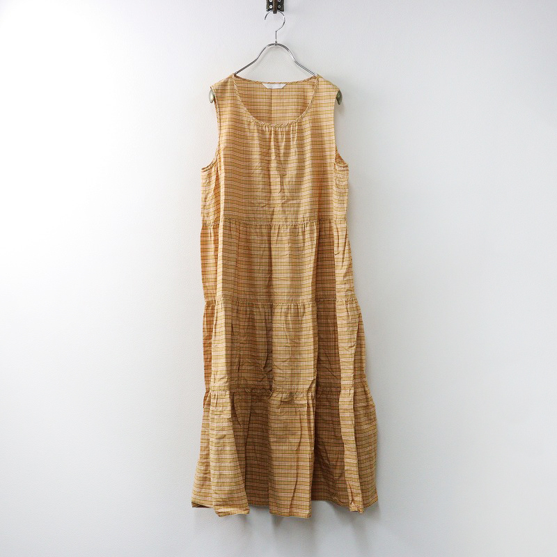 美品 2024年 ピンクハウス PINK HOUSE オリジナルチェック ティアードギャザーノースリーブワンピース オレンジ系┃【2400014582482】