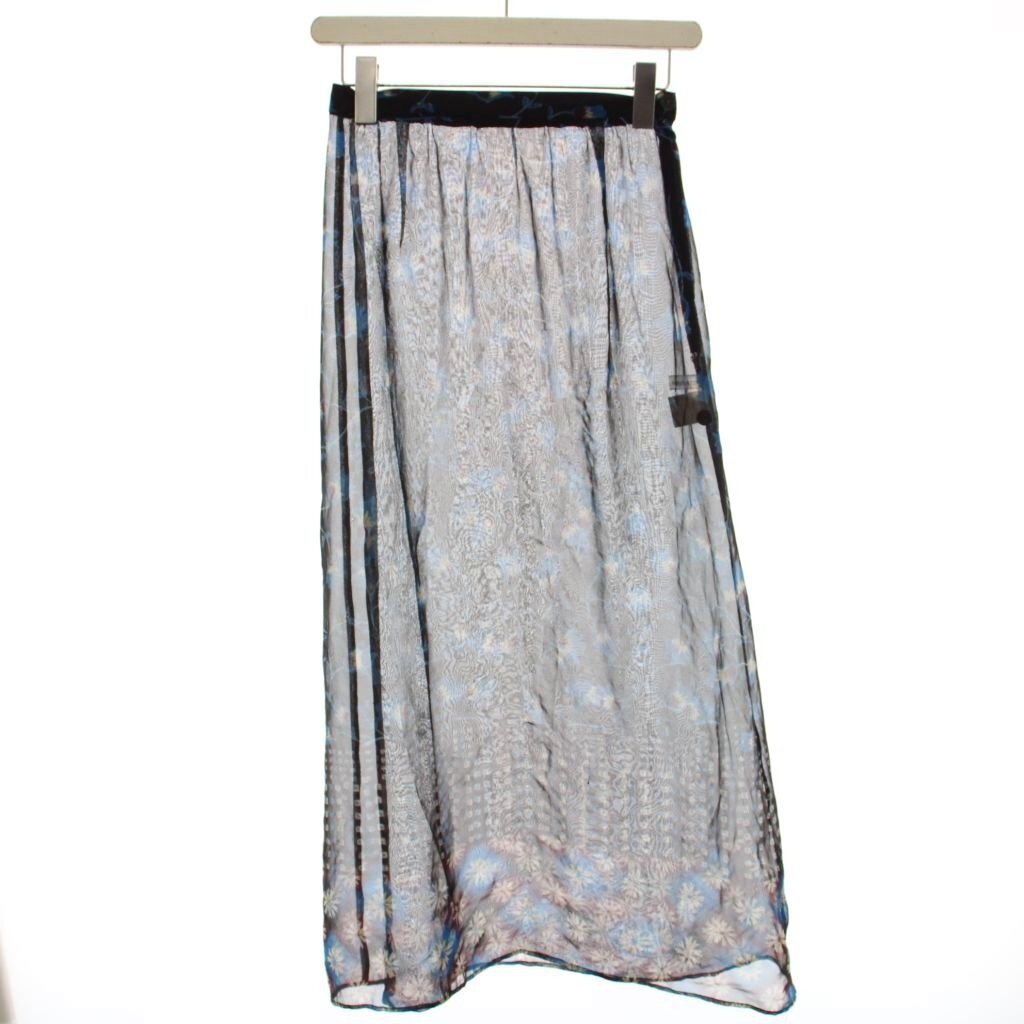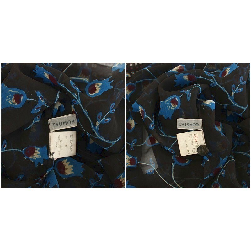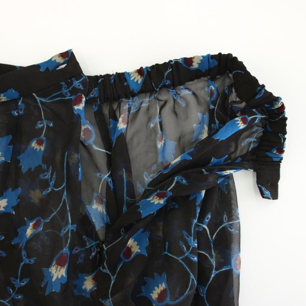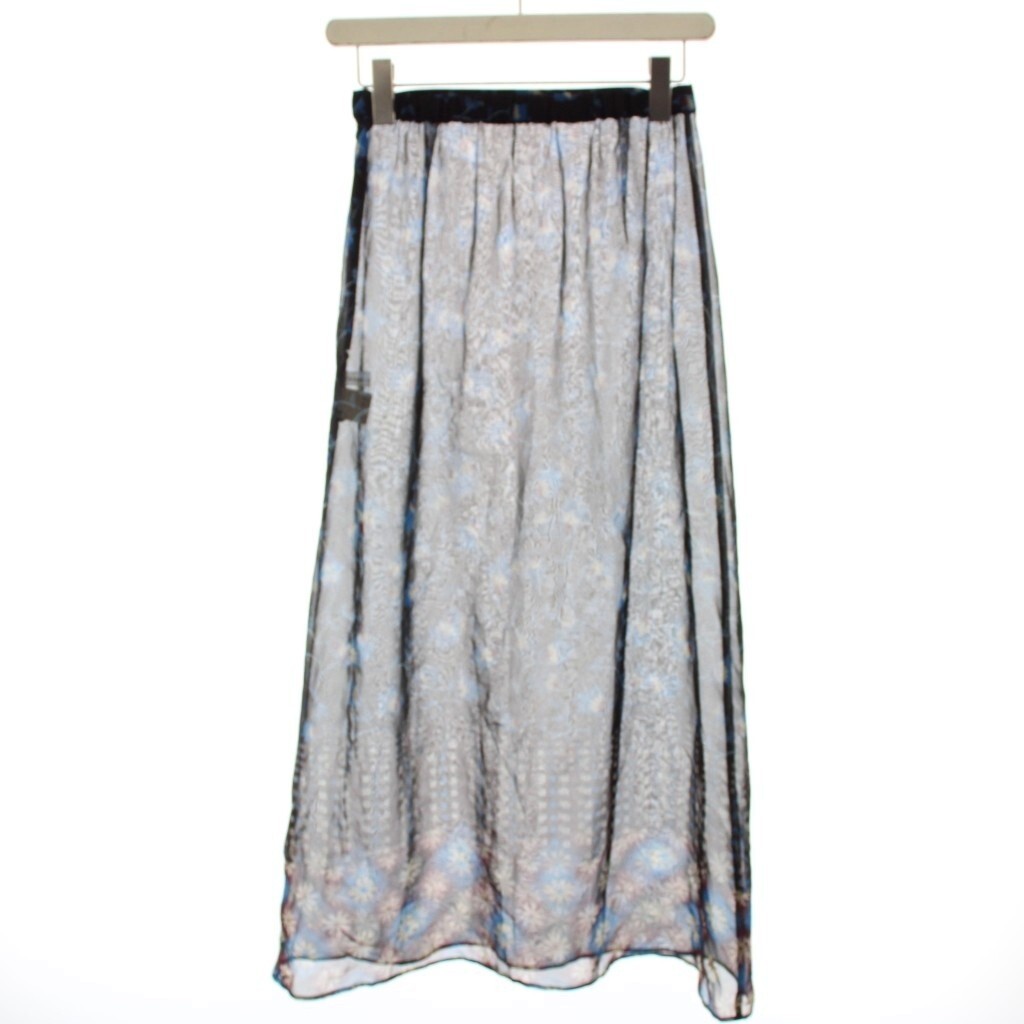 ツモリチサト TSUMORI CHISATO フレアスカート ミモレ ロング シアー シースルー 花柄 総柄 M 黒 ブラック 青 ブルー 43-FG181