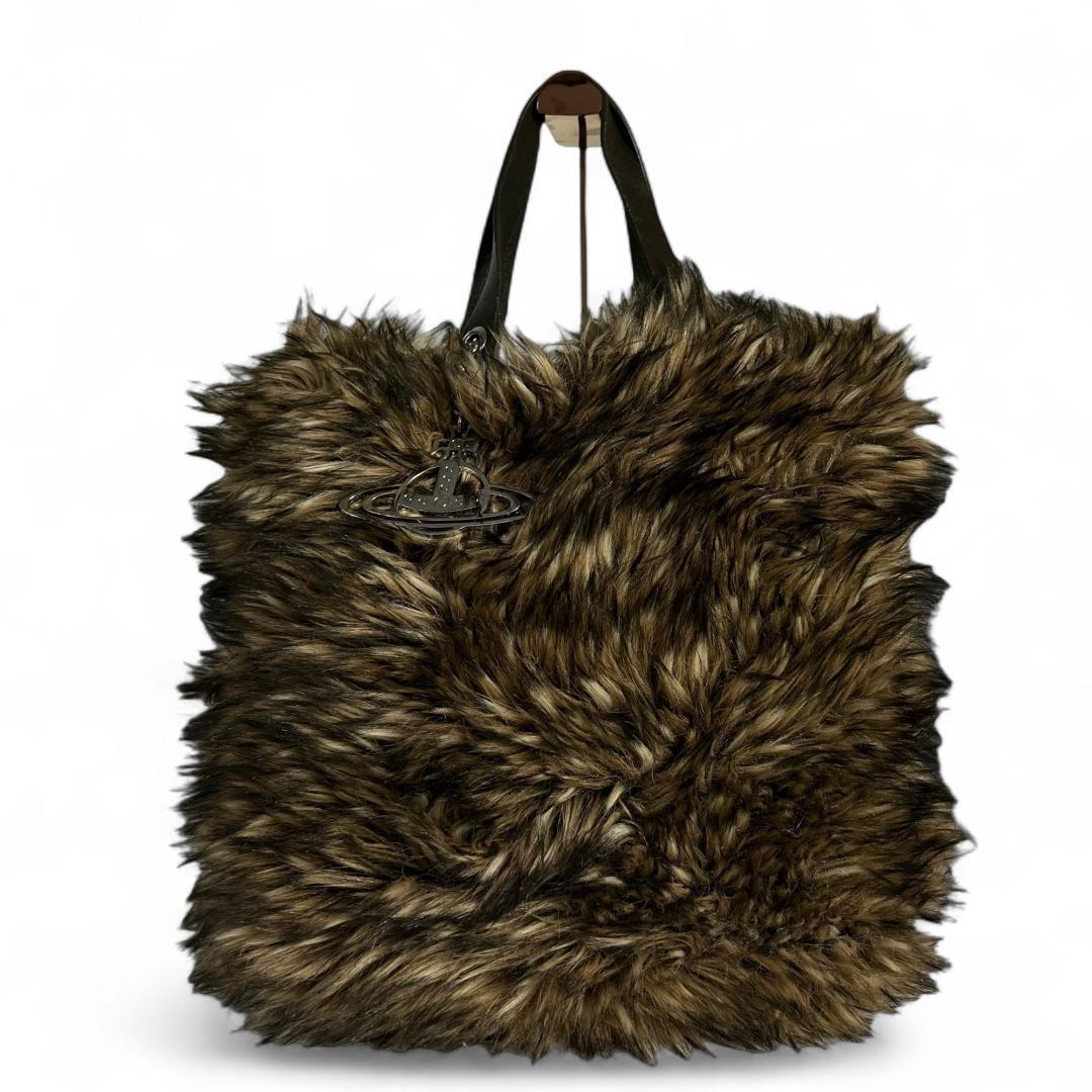 Vivienne Westwood トートバッグ ファー ブラウン メタルオーブ