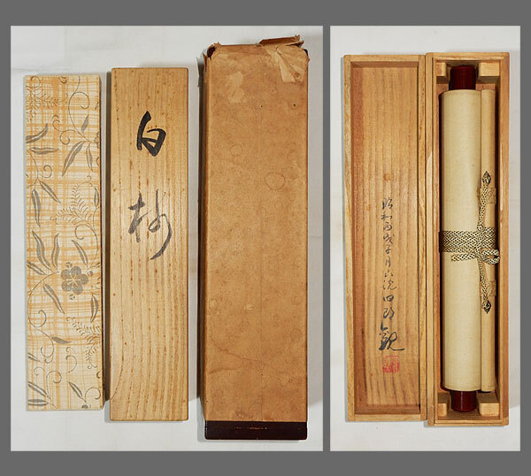 ・掛軸の軸先ですが、細心の注意を払って梱包しておりますが、 配送中の振動・気温・経年劣化等で外れてしまうことがあります。 軸先の外れは、破損ではございませんので、返品の対象にはなりません。 大変お手数ですが、お客様ご自身での修復をお願い致します。 ・添付写真の画像と説明文でご理解頂ける方、ご入札を宜しくお願い致します。 ・添付写真の画像は撮影の光度により、現物と若干の色合いの相違が生じる事があります。 ・添付写真の画像は受取完了のご連絡を頂いた後に速やかに消去しますのでご了承下さい。 ・土・日・祝日はお休みさせて頂きますので、商品発送は、月曜日以降になります。 ・祝日の場合は、翌日の平日以降の発送になります。 ・土・日・祝日は、メールの返信が若干遅れる事がございます。どうか、ご了承下さい。 ・時間的に余裕がない場合などでお答えが出来ない事も多々有ります。 ご不明な点は落札日前日までに早めにご質問下さい。 ・商品トラブルがあった場合は、直ちにご連絡下さい。 お取引に付きましては迅速・丁寧に対応させて頂きます。 ・落札後、できるだけ2日以内に連絡(返信)を頂ける方、 5日以内にご入金できる方の御入札を御願い致します。 ・新規の方や評価の総評が悪い方は当方の判断にて、入札取り消しを行う場合がございます。 ・お取引に付きましては、迅速、丁寧に対応致しますのでどうぞ、宜しくお願い致します。 ・古美術品や古物や古書画の出品が多いため、神経質な方がご入札される場合は、 ご自身が納得の行く価格でご入札ください。 ・万一、ヤフーのシステム障害により、公正なオークションができなかったまま終了し、 落札者様にご落札された場合は、当方より取引ナビで取引中止のご連絡を致します。 その時は、どうか、ご了承をお願い致します。 ・終了当日・直前の入札の取り消しは、 トラブルの原因となりますのでご遠慮お願い致します。 ・入札後の取り消し(キャンセル)は行っておりません。 ・落札後のキャンセル・返品はお断りしてます。 入札前によくご確認頂き、間違いのないようにご注意下さい。 |