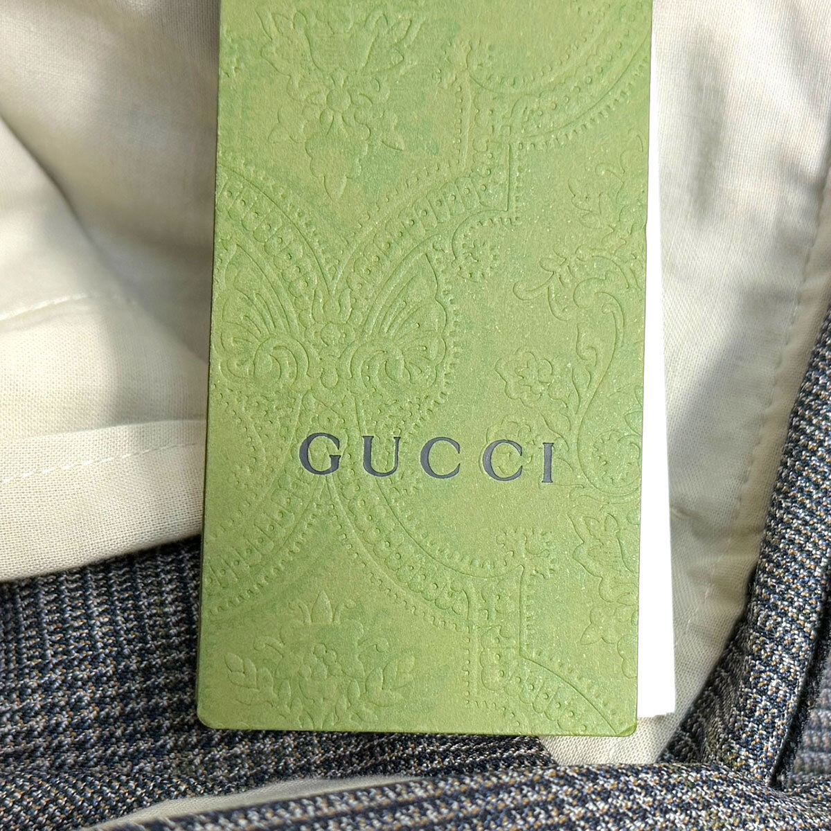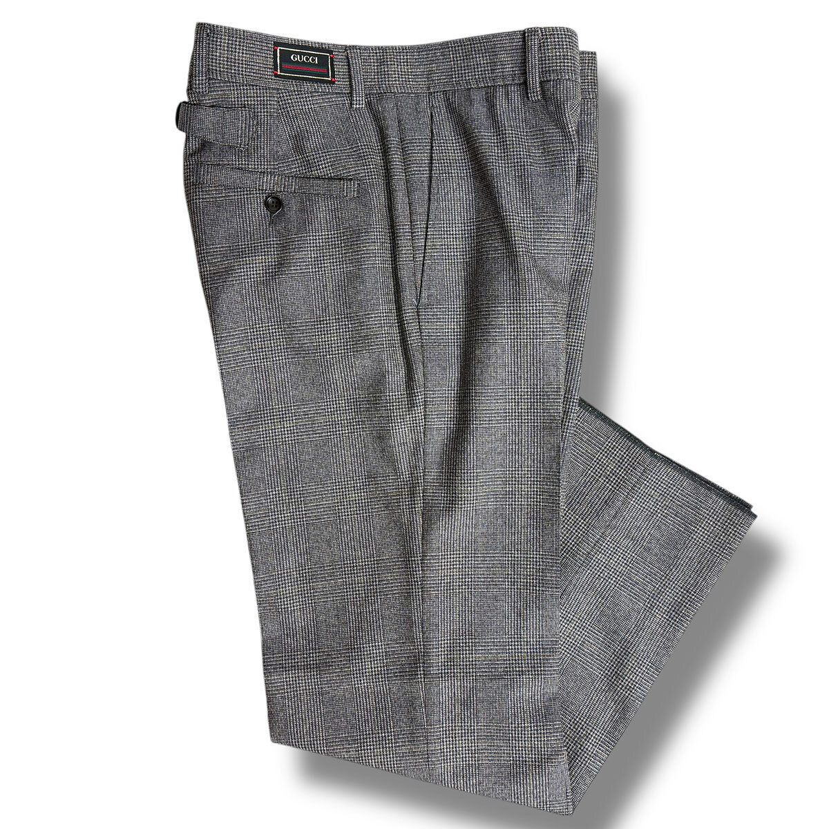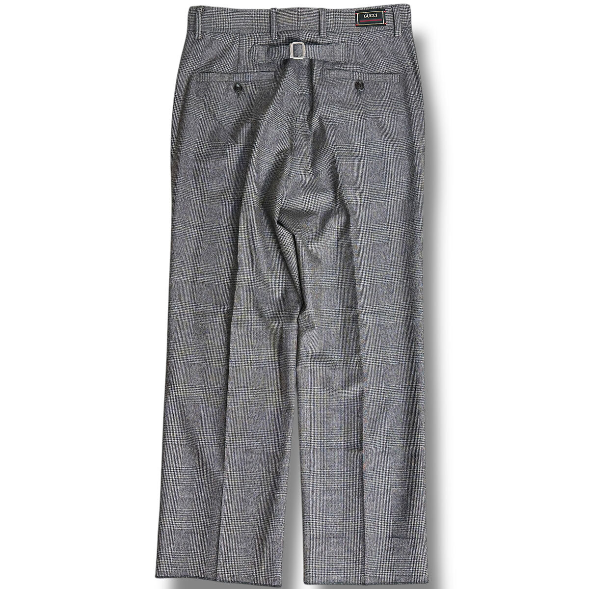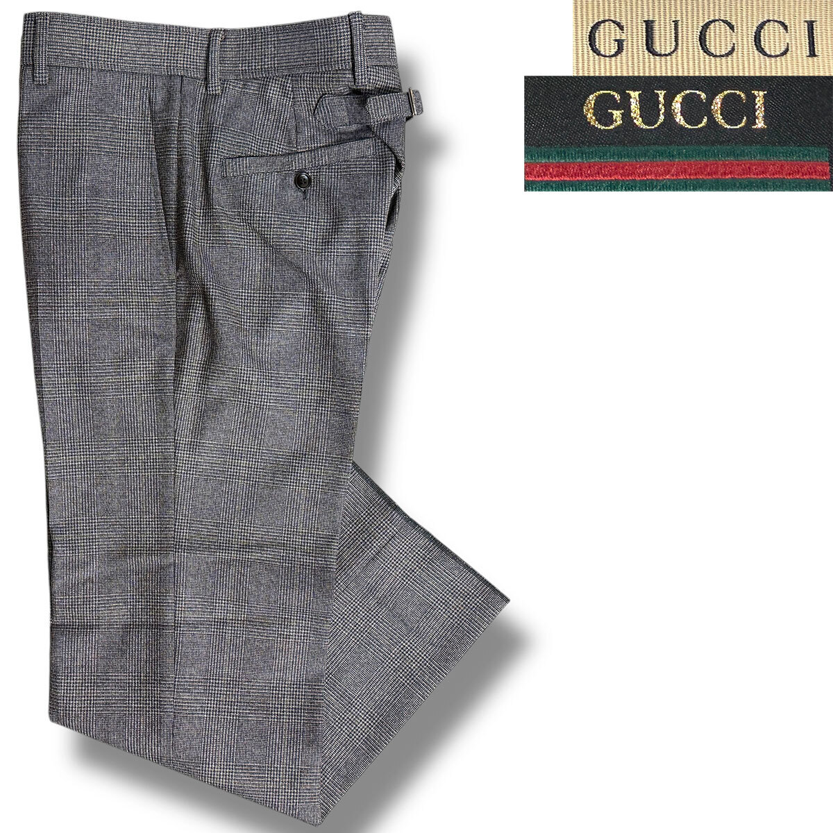 J7402 新品 グッチ シンチバック グレンチェック フランネルスラックス グレー 46 GUCCI