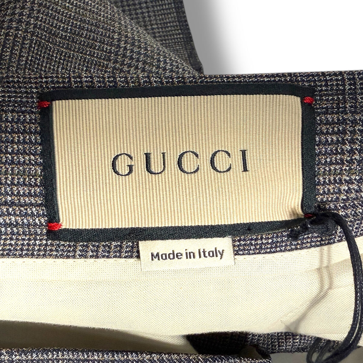 商品について:イタリアのラグジュアリーブランド GUCCI(グッチ) より、クラシカルなグレンチェック柄を採用したフランネルスラックス。温かみのあるフランネル生地は秋冬シーズンに最適で、上品なグレーの色調が大人の洗練された雰囲気を演出します。 背面にはクラシカルな シンチバック仕様 を採用。細部にまでこだわったディテールが、トラディショナルな雰囲気を高めています。モダンなシルエットとグッチならではの上質な仕立てにより、ビジネスからドレスカジュアルまで幅広く対応可能。