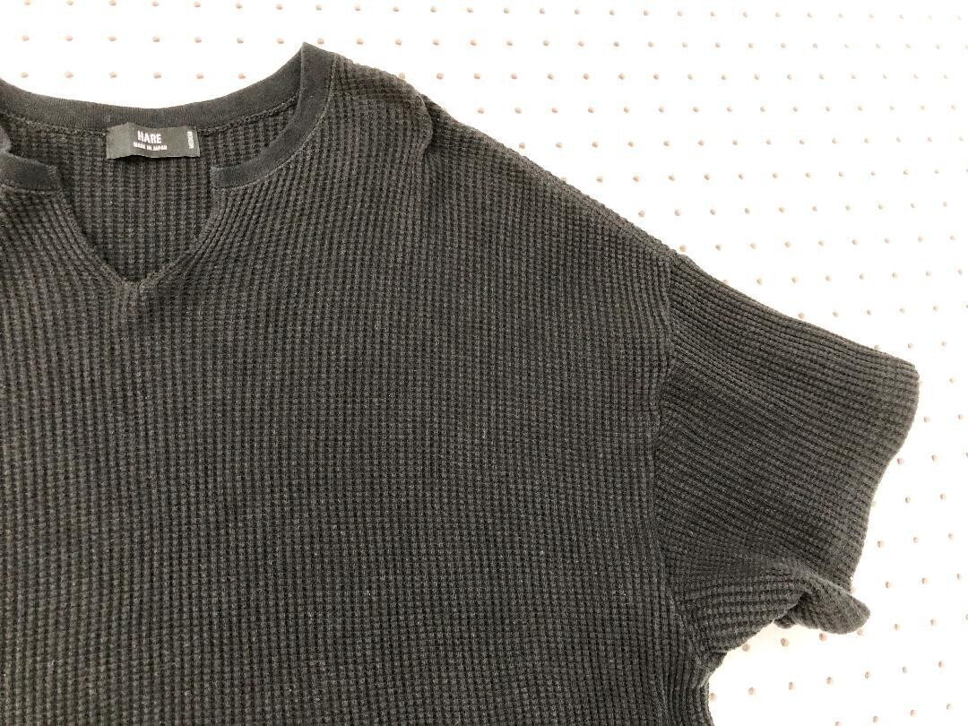 HARE ハレ スリットネック 厚手 ワッフルカットソー Tシャツ 黒