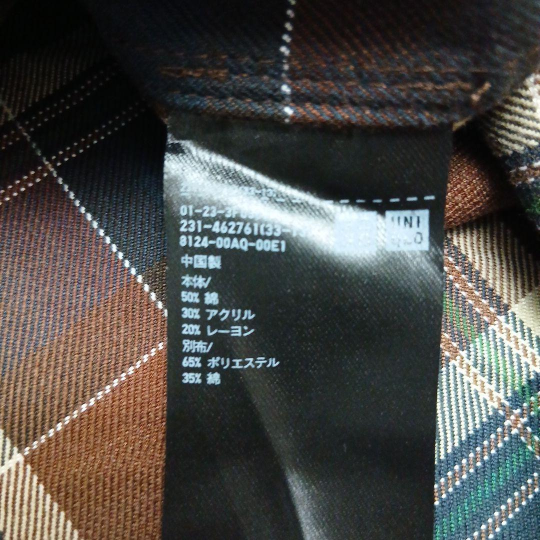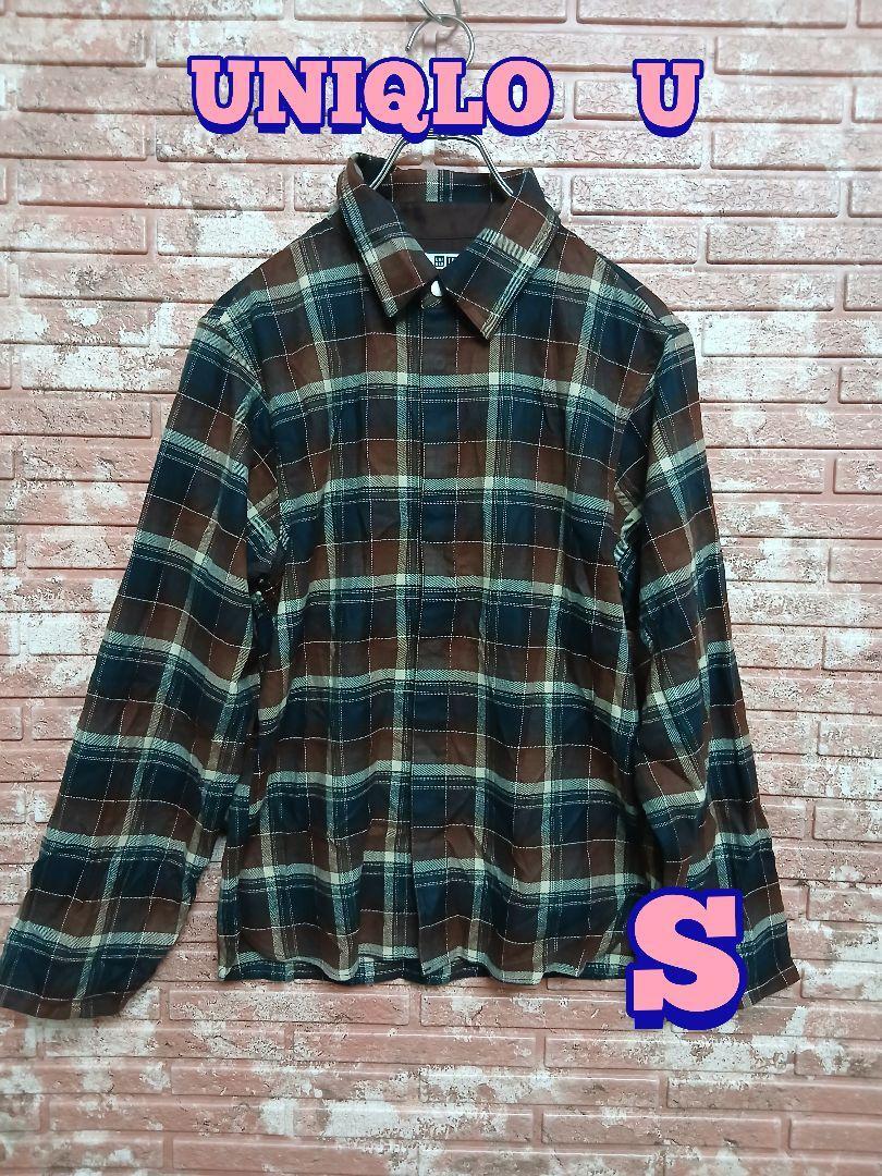 【UNIQLO U】チェック柄 長袖フランネルシャツ ダークブラウン S