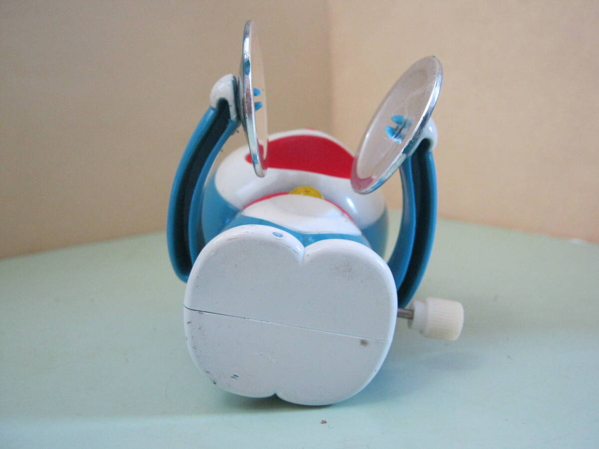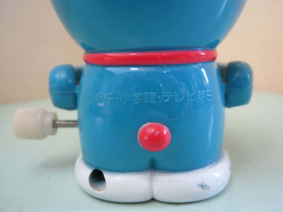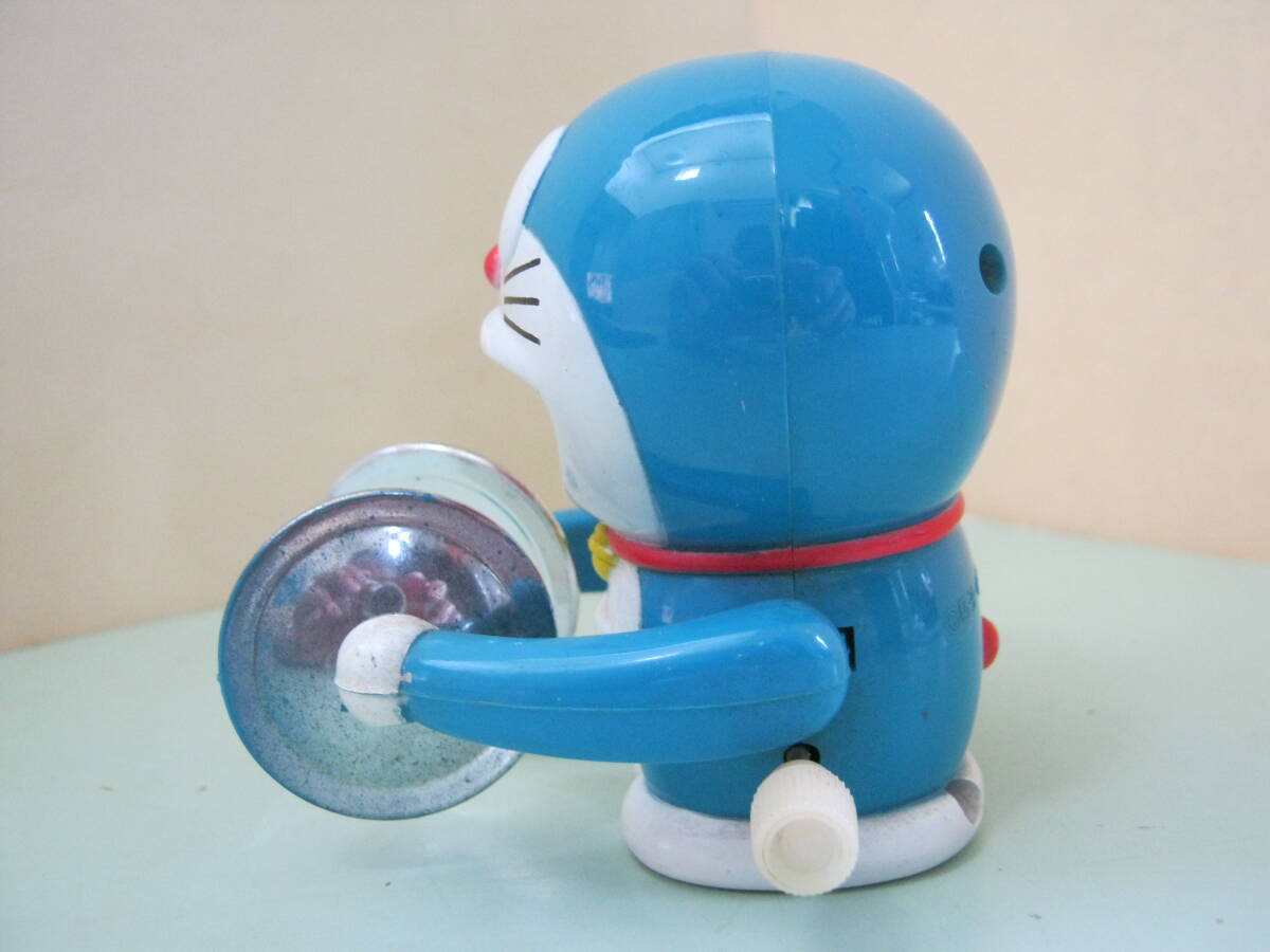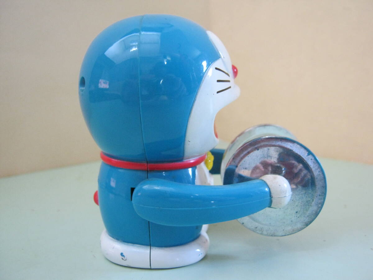 本体のみです。パッケージはありません。本体に汚れ、キズ、色ハゲがあります。本体の右側側面のゼンマイを巻く棒を右側に回転させてゼンマイを巻くと左右の手に付いているシンバル部分が開いたり閉じたりします。可動品です。本体に破損、欠品はありません。本体の背中に刻印があります。刻印は丸の中にCの文字 藤子・小学館・テレビ朝日 以上の刻印があります。本体サイズは約7㎝×6㎝×7㎝位です。