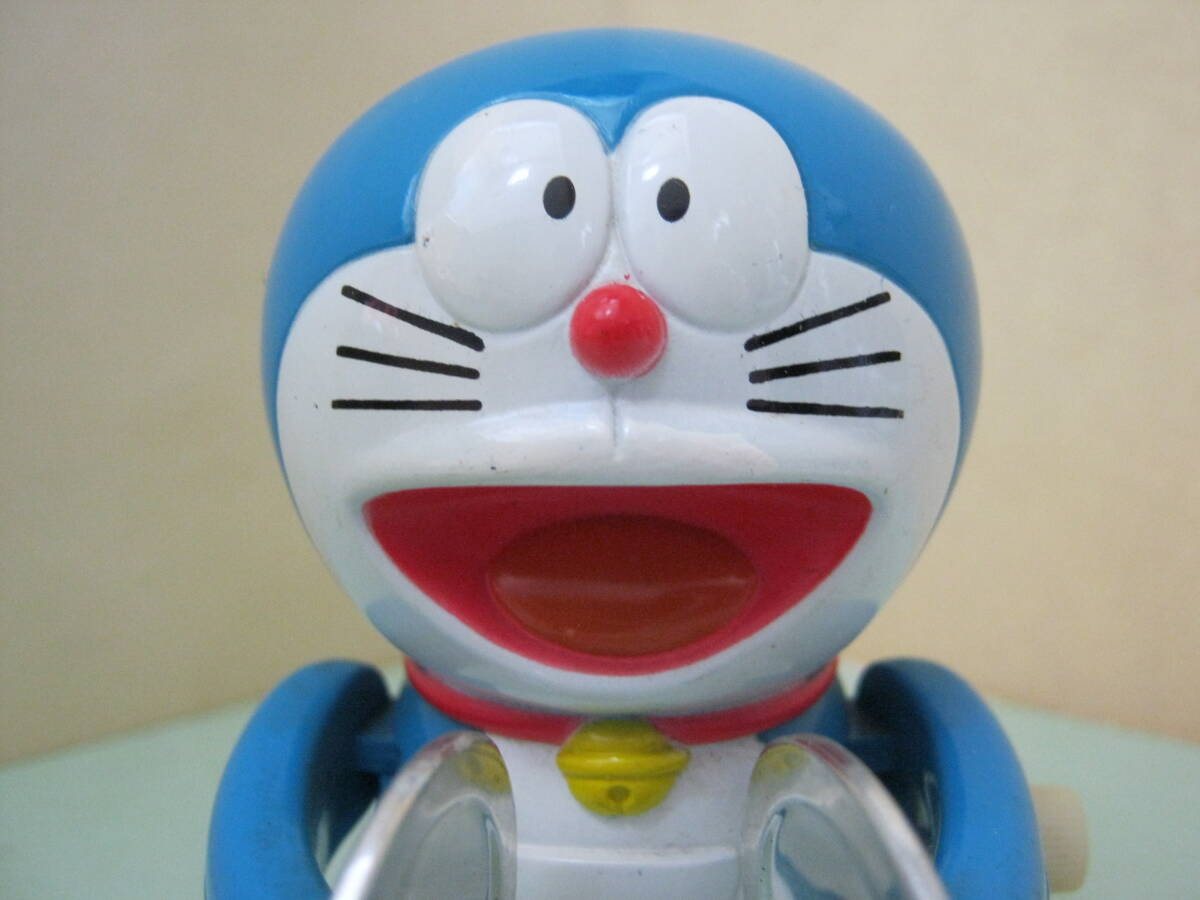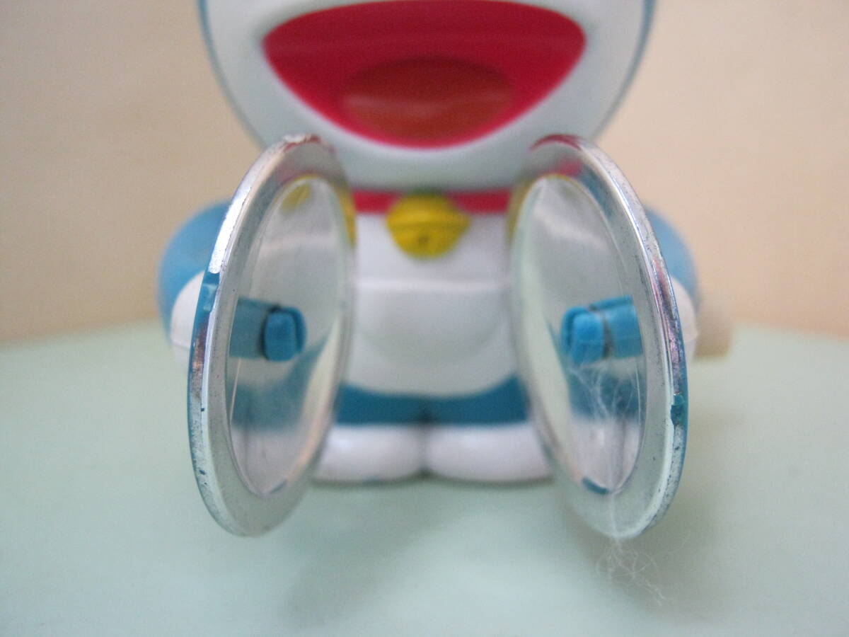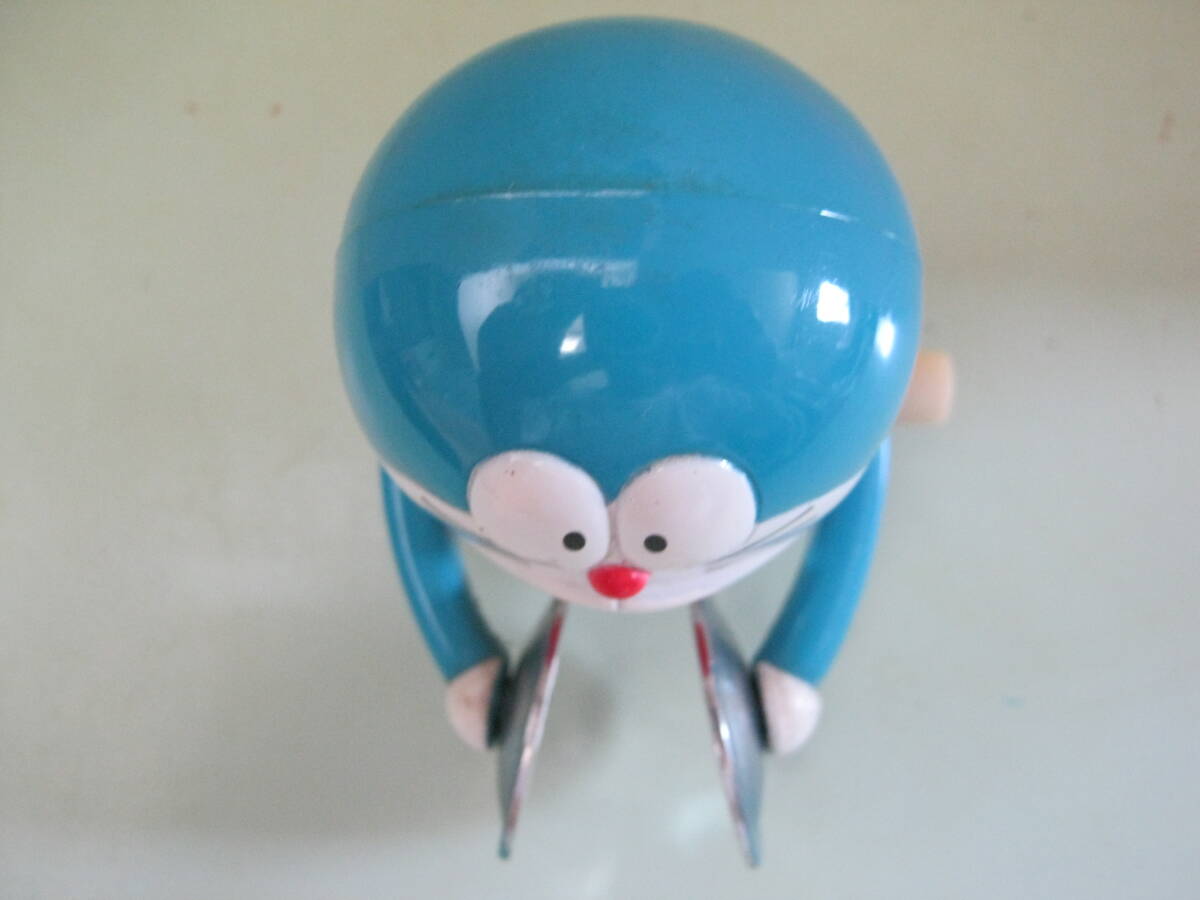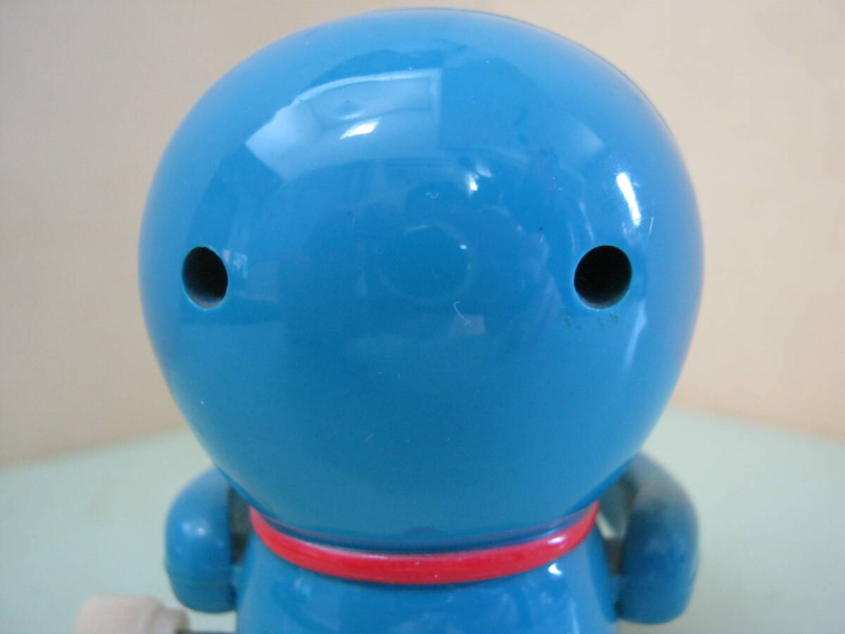 本体のみです。パッケージはありません。本体に汚れ、キズ、色ハゲがあります。本体の右側側面のゼンマイを巻く棒を右側に回転させてゼンマイを巻くと左右の手に付いているシンバル部分が開いたり閉じたりします。可動品です。本体に破損、欠品はありません。本体の背中に刻印があります。刻印は丸の中にCの文字 藤子・小学館・テレビ朝日 以上の刻印があります。本体サイズは約7㎝×6㎝×7㎝位です。