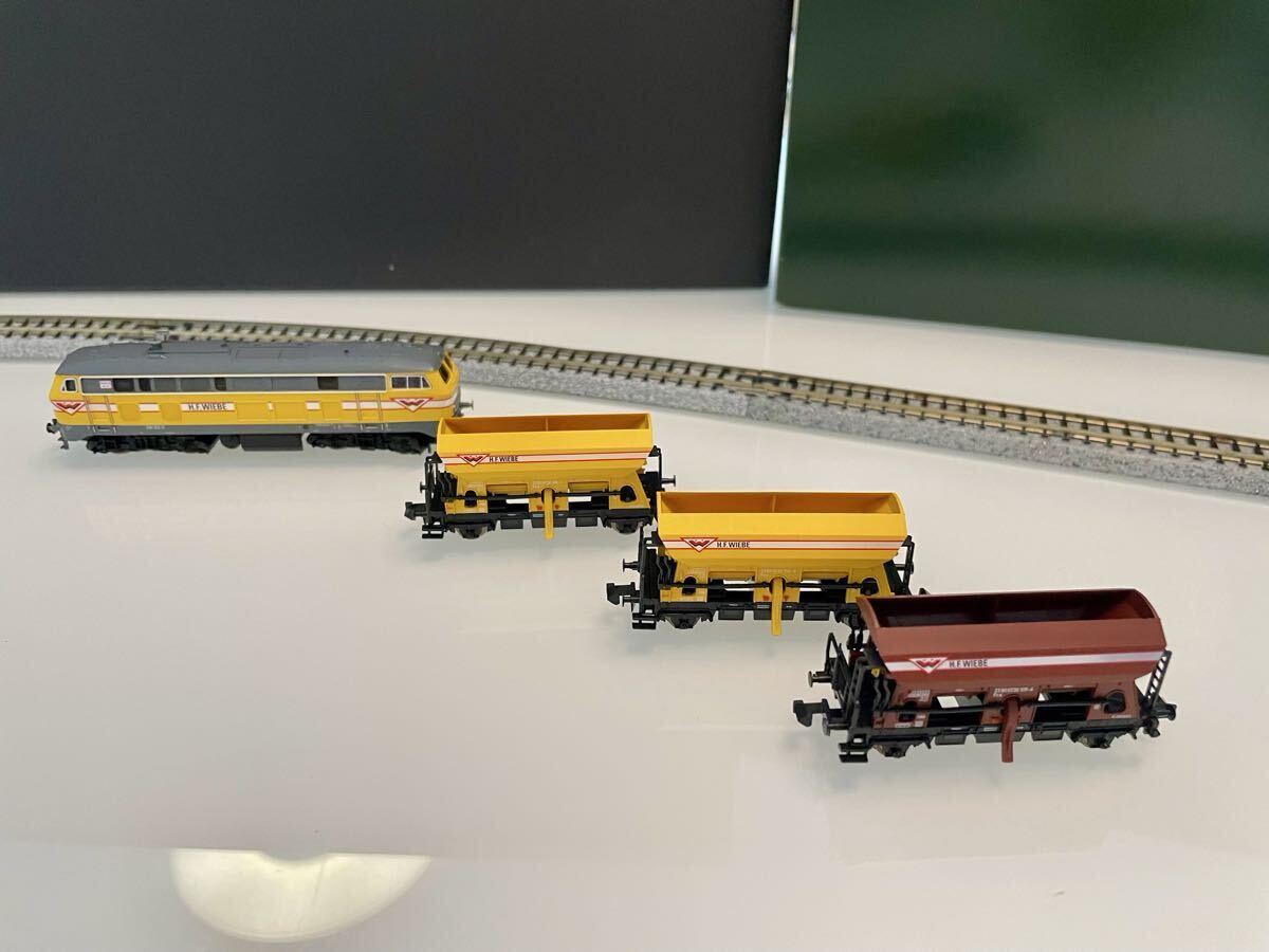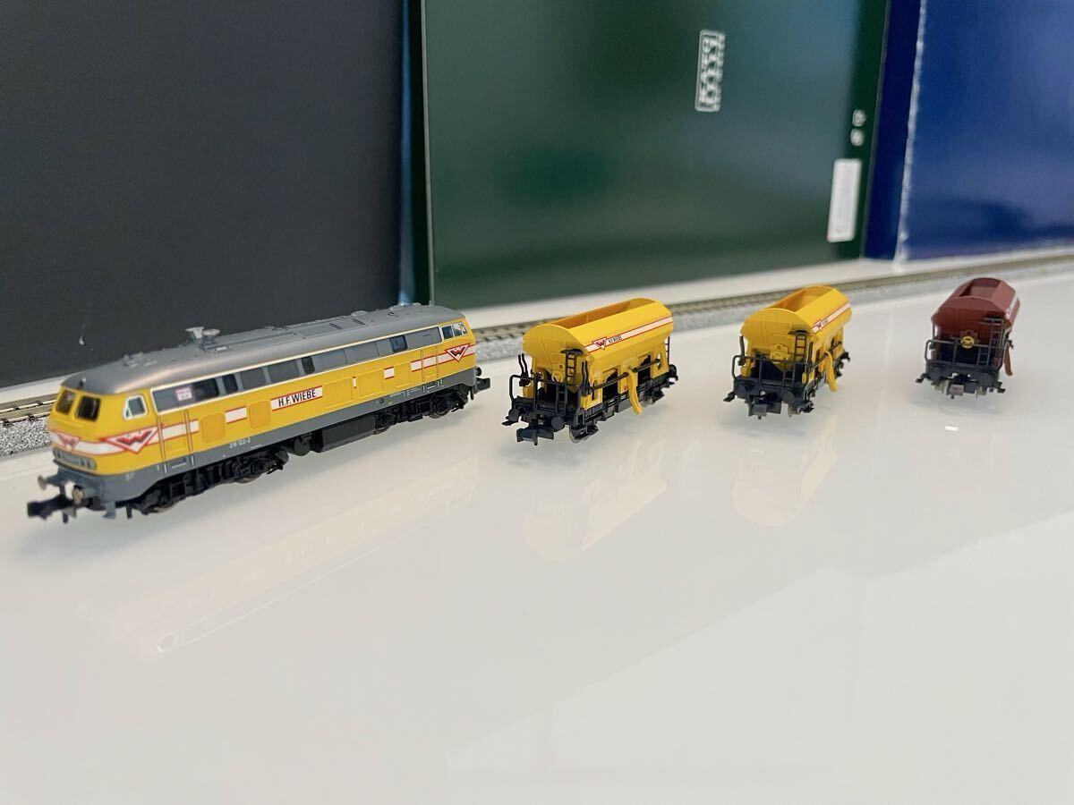 ◆ 出張時ドイツ・フランクフルト模型専門店に予約して購入しました。購入後、別の段ボール箱に入れて保管しましたが、忙しく忘れた存在に…コレクション整理で出品します。FLEISCHMANN PRIVATE Diesel Locomotive. 218の動力ユニットは購入時と出品時にテスト走行し、スムーズに走行ました。また、ヘッドライトの点灯も確認しました。今では絶品となったヨーロッパプライベート建設車両セット【新品未走行】FLEISCHMANN 781006. Wiebe Bauzugset BR218+砂利運搬専用貨物X3両=4両編成がすぐに楽しめますので、是非ご入札お願いします。