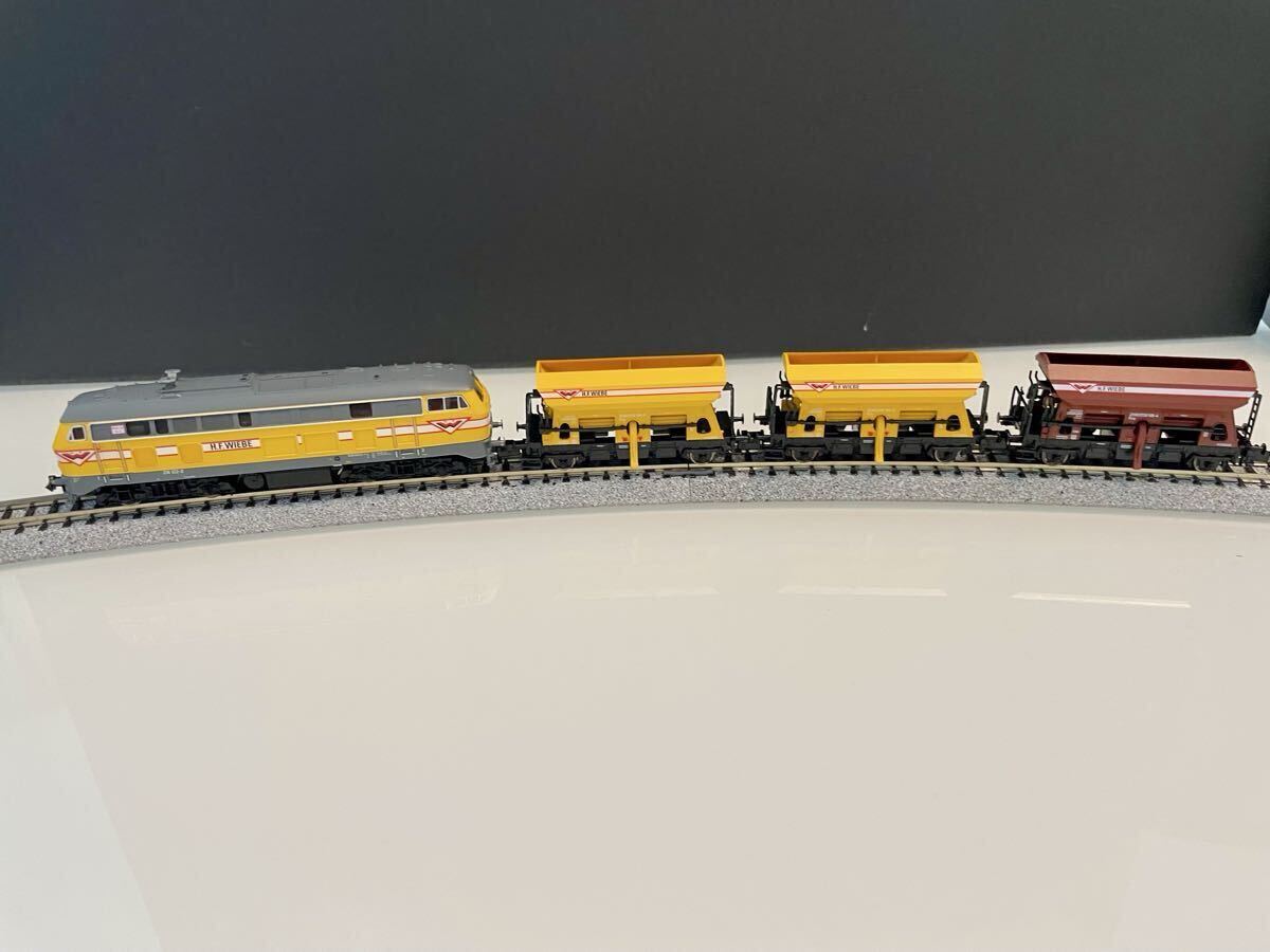 ★ ヨーロッパプライベート建設車両セット【新品未走行】FLEISCHMANN 781006. Wiebe Bauzugset BR218+砂利運搬専用貨物X3両