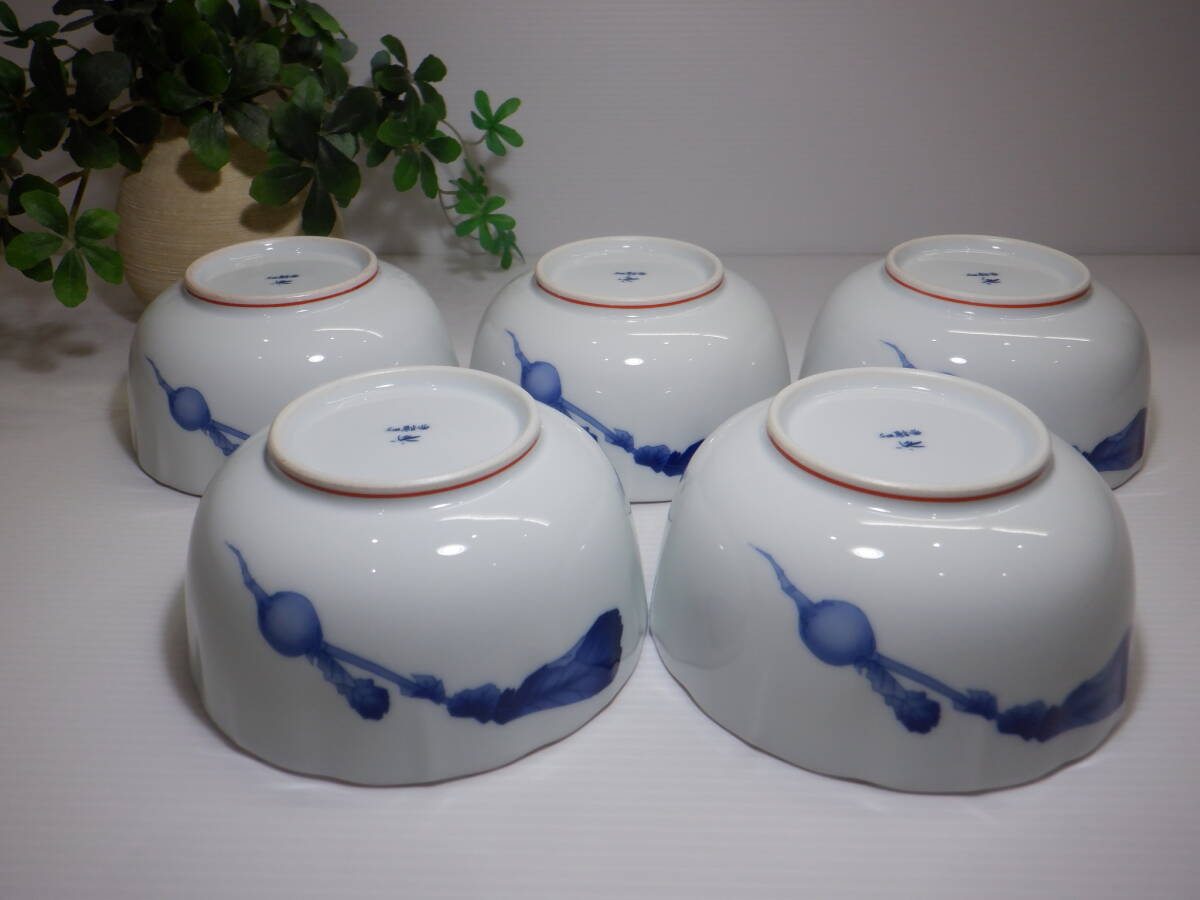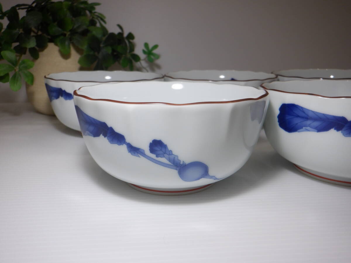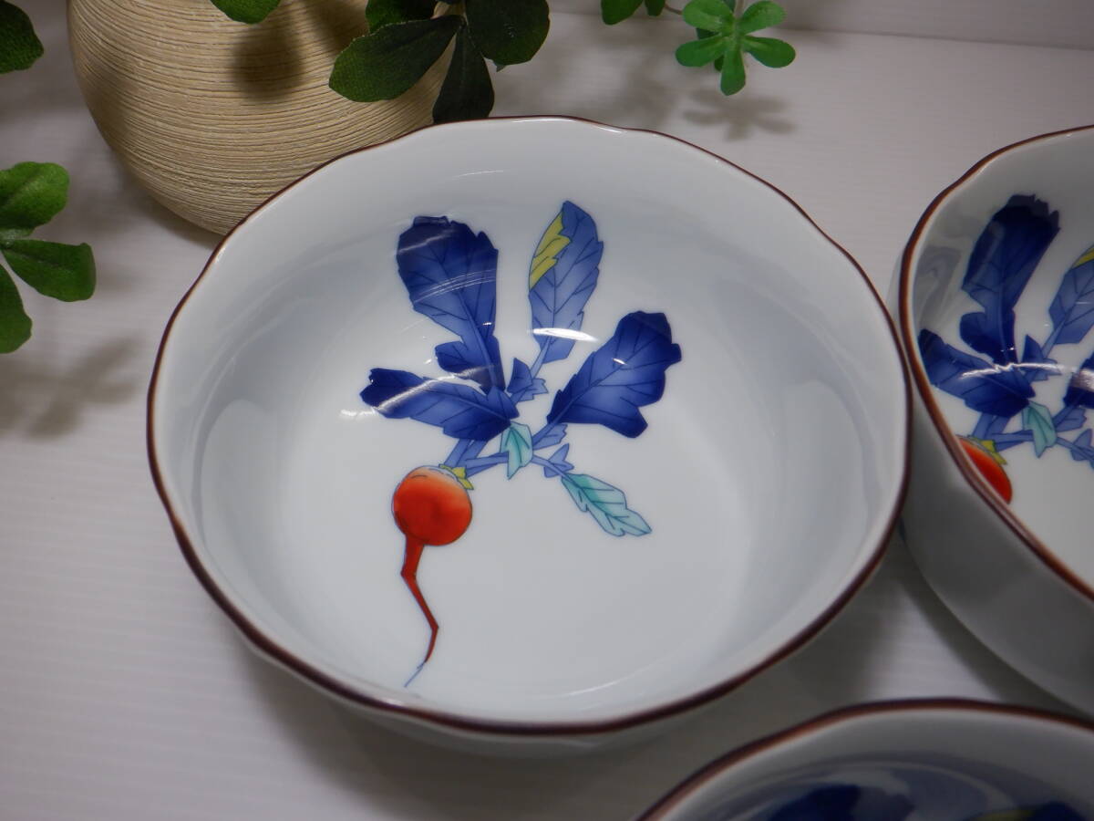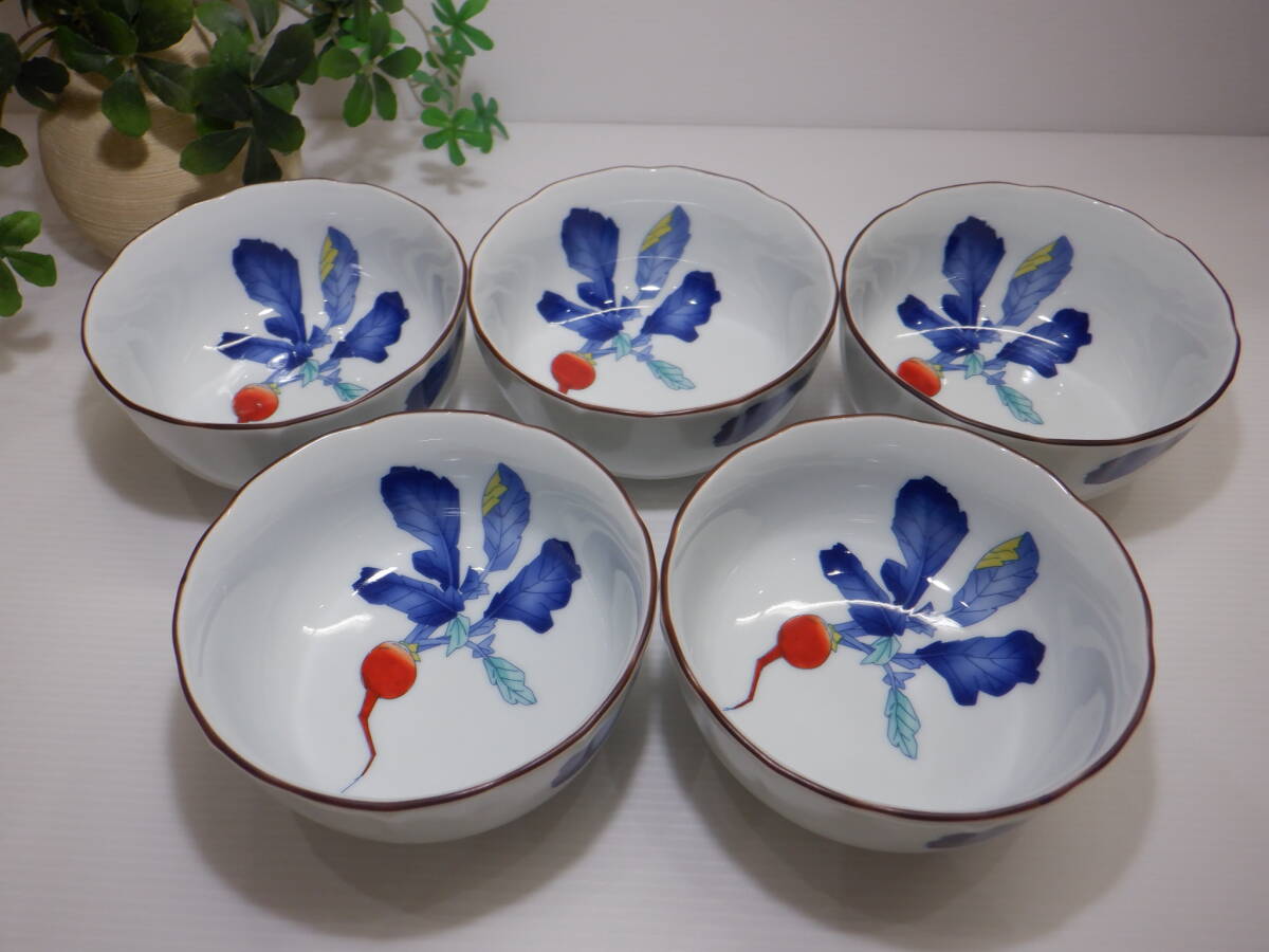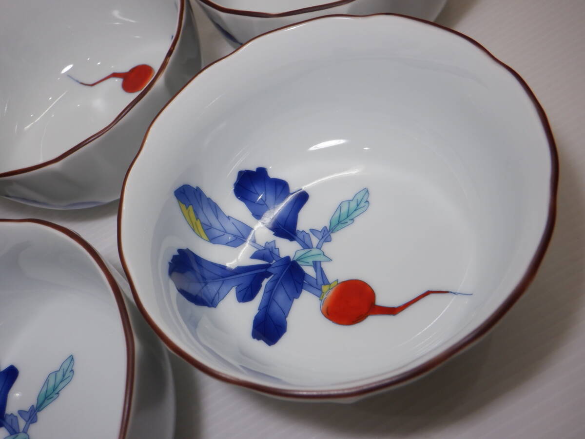 ♪香蘭社 赤繒町工房 桔梗渕小鉢 5客 【かぶら】 絵付 有田焼 和食器 盛り鉢♪未使用 | ||
