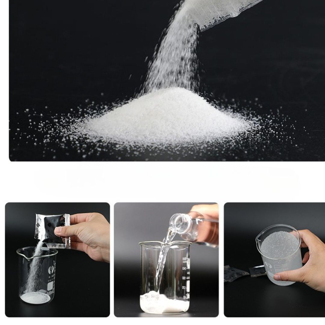 使い方は驚くほど簡単。お手持ちの簡易トイレや、ご家庭の洋式便器にセットしたビニール袋の中に、用を足した後に本品をサッと1袋振りかけるだけ。高性能な吸水性ポリマーが、尿や便に含まれる水分をわずか数十秒で素早く吸収。可燃ゴミとして処理できる、衛生的なジェリー状に固めます。水分が漏れ出す心配もありません。
