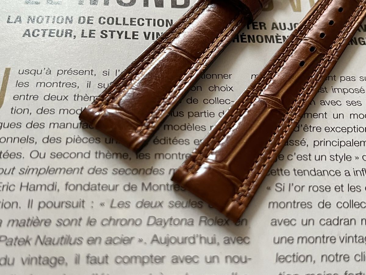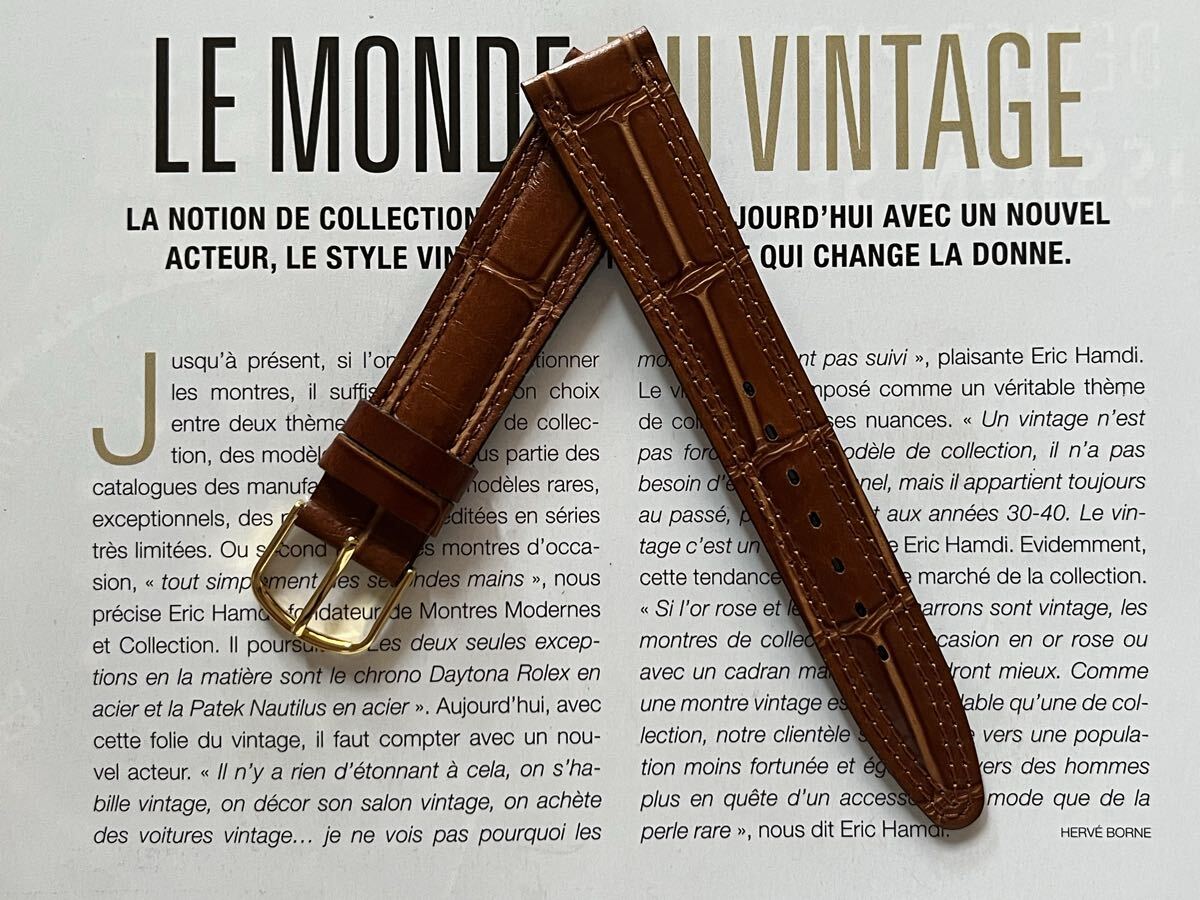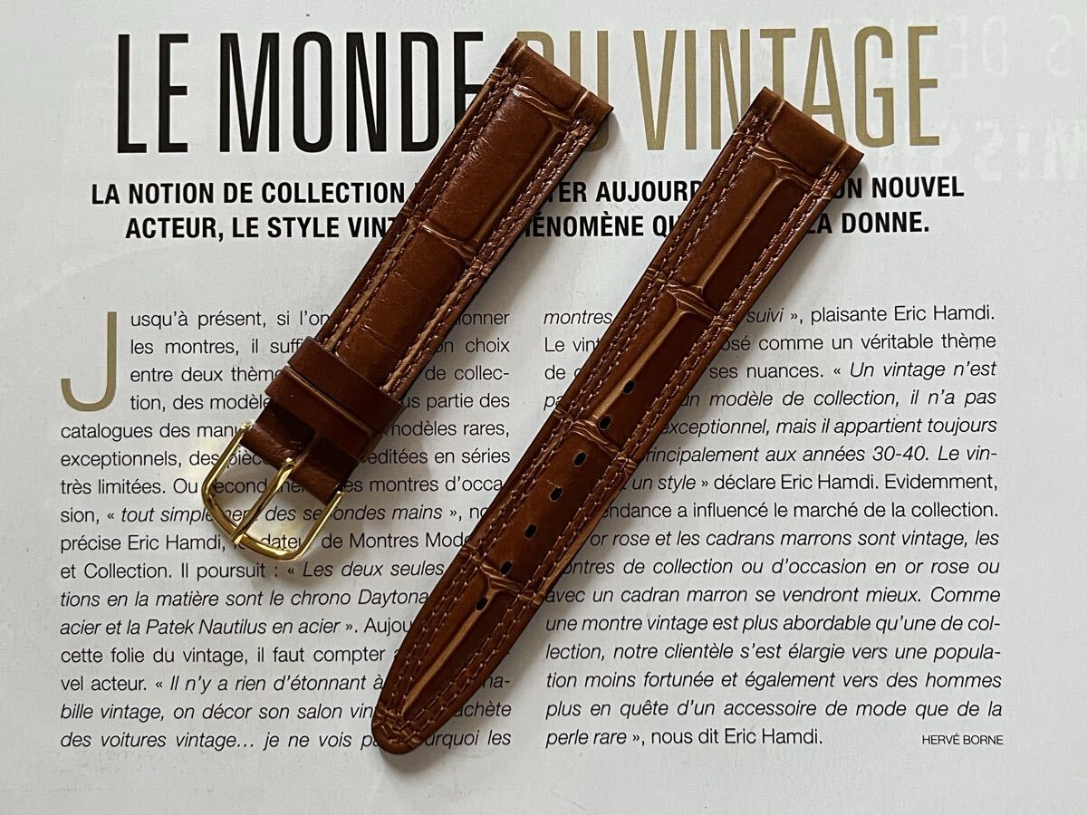 ◆デッドストック品 ヴィンテージ ブラウン クロコ型押し ダブルステッチ 18mm リアルレザー