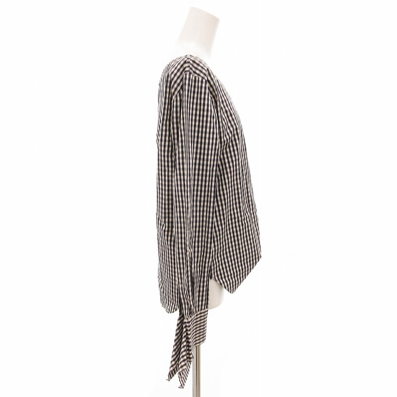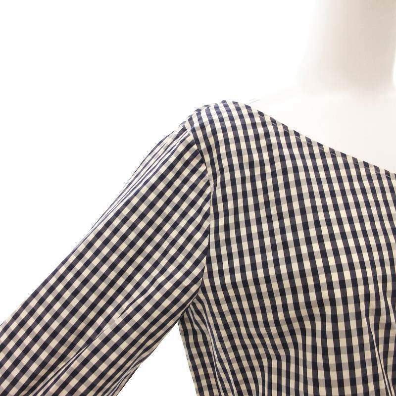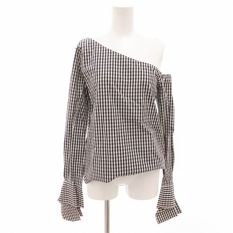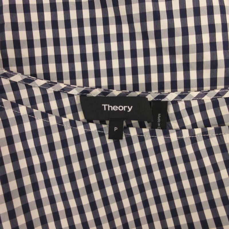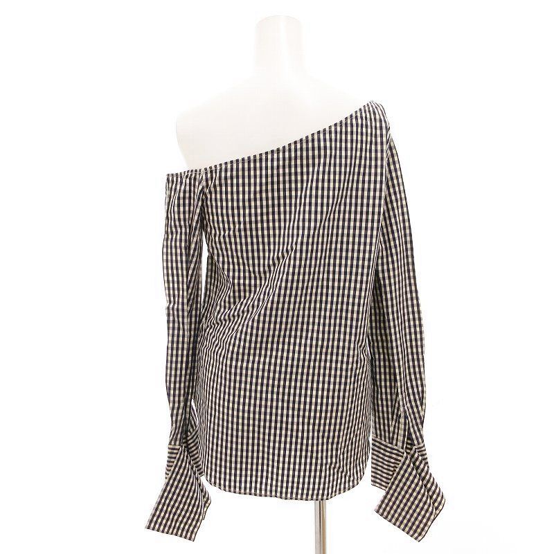 セオリー Theory カットソー ギンガムチェック オープンショルダー シルク混 長袖 P 白 ホワイト 紺 ネイビー /FF ■MET1 レディース