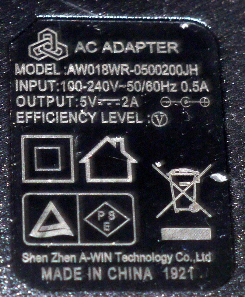 ACアダプター AW018WR-0500200JH DC5V 2A コネクター外径5.4mmの出品です