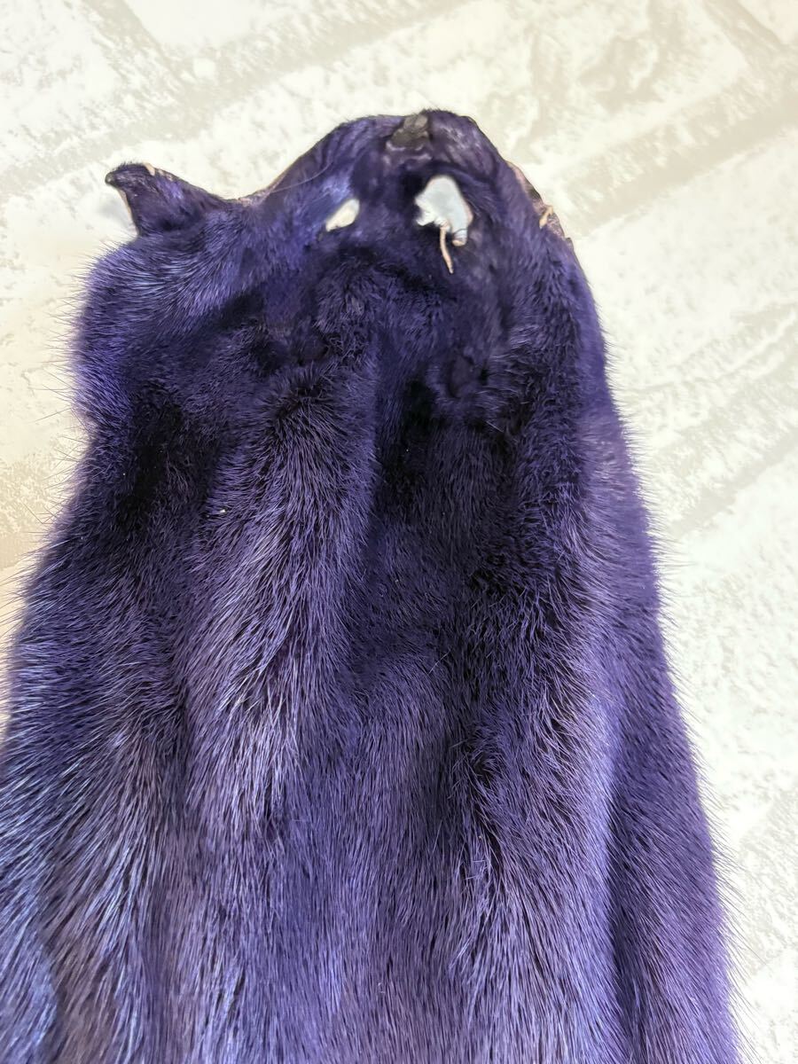 高級ミンクファー原皮毛皮 紫染 パープル 尻尾付き リアルファー 素材パーツ ハンドメイド材料 レザークラフト素材
