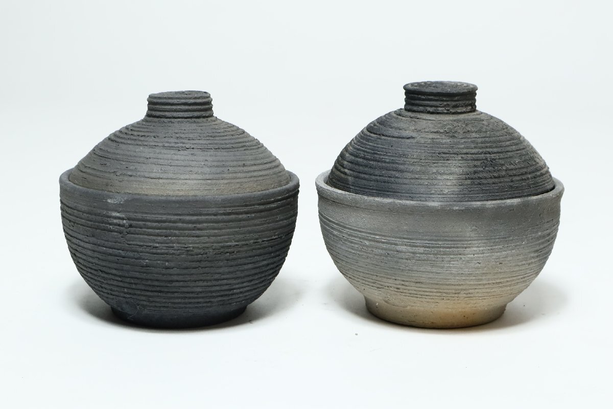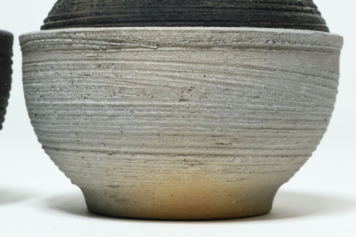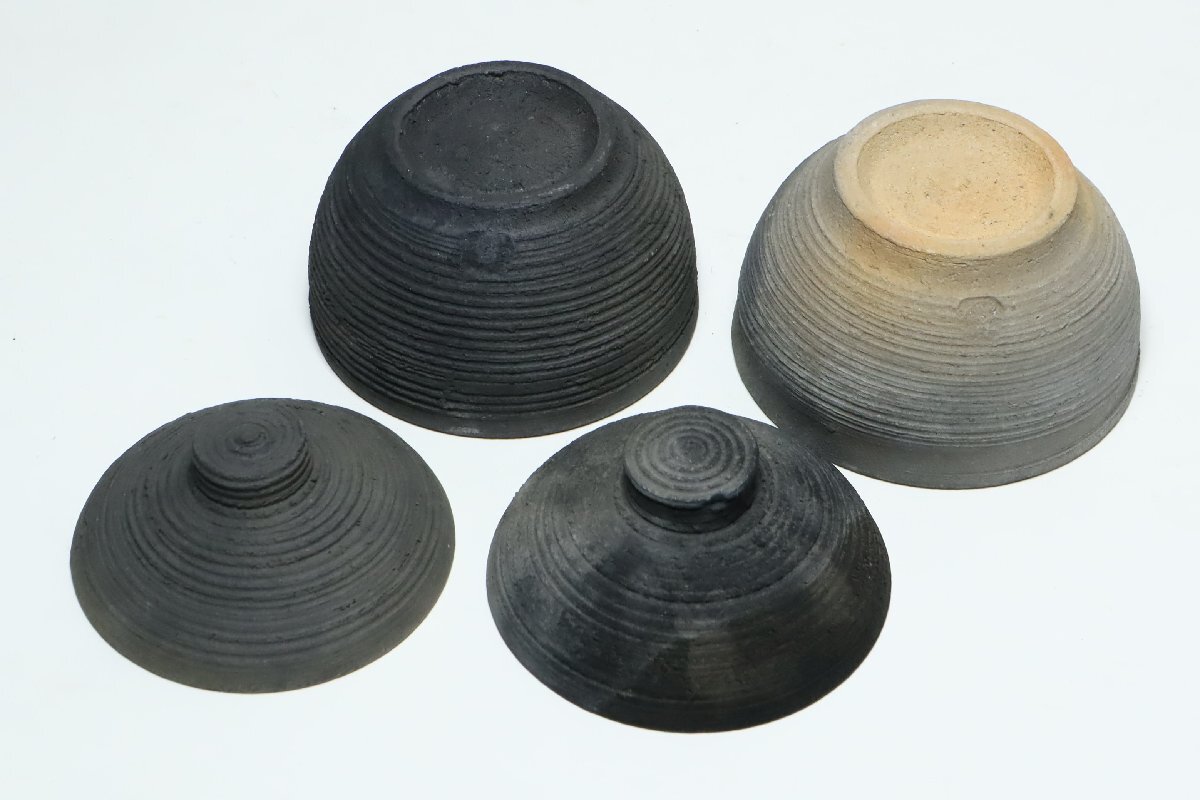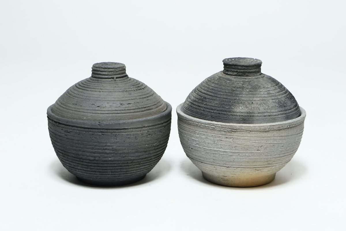 | ・坂田甚内 黒陶線文 蓋付碗 二客 /益子焼 小吸物碗 |
