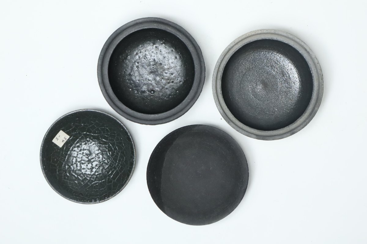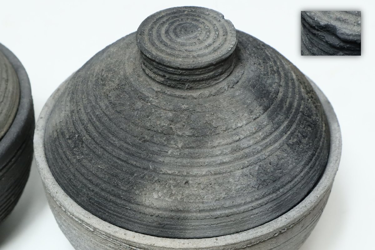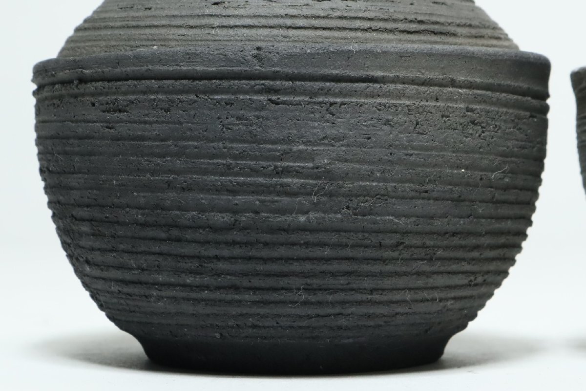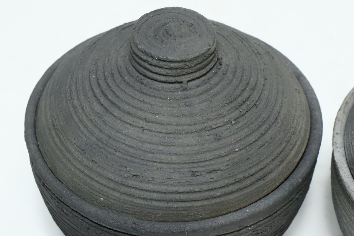 | ・坂田甚内 黒陶線文 蓋付碗 二客 /益子焼 小吸物碗 |