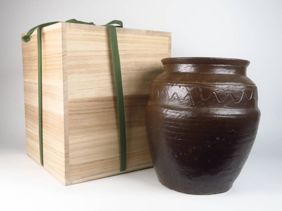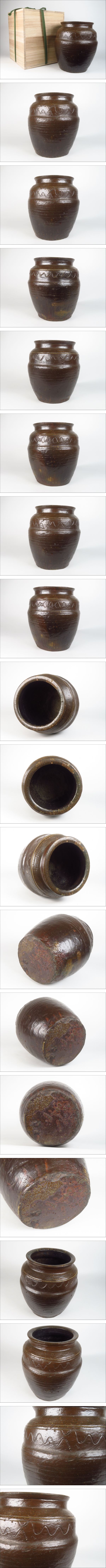 | 古唐津 唐津焼 朝鮮叩き水指 1690年代 茶道具 時代 当時物 箱付 骨董品 古美術品 高さ22.5cm【831】 | ||