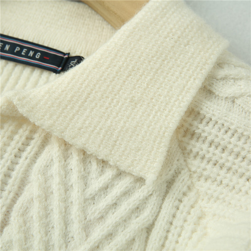 Y6360-2XL ネイビー 新品 ウール混 ジャガード 肌触りが良い ニット セーター 折り襟 柔らか 暖かさ 秋冬 厚手 メンズ カジュアル トップス