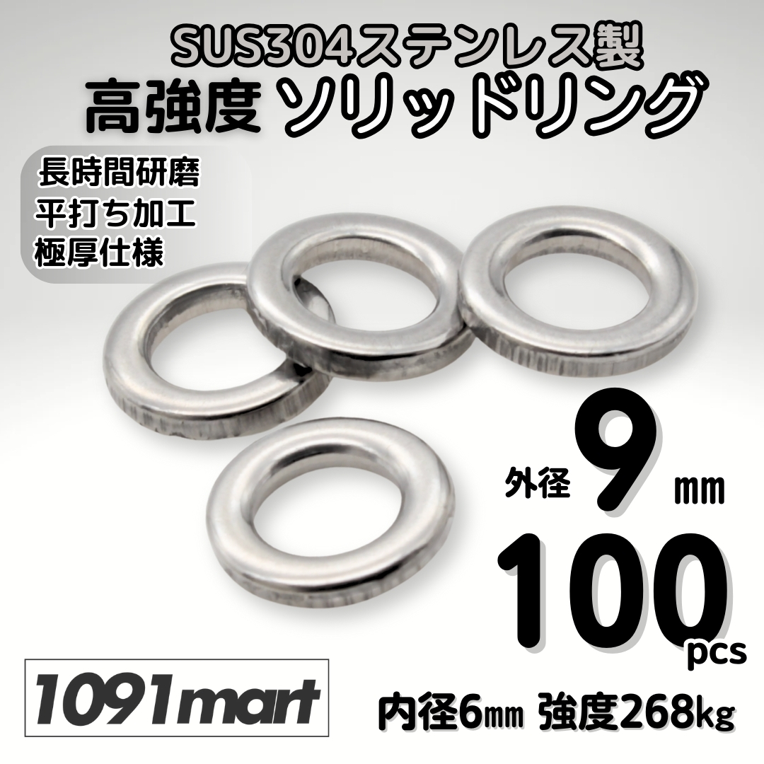 平打ち 強力 ソリッドリング 9㎜ 100個セット 最強素材 SUS304ステンレス製 ソルト対応品 長時間研磨 極厚仕様 ジギング【1091mart】