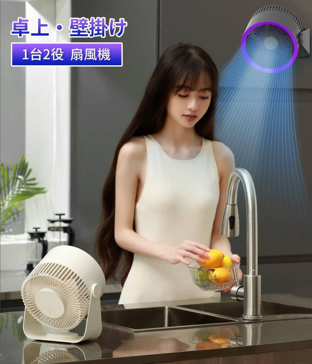 • 【卓上&壁掛けの2way仕樣】扇風機の台座に滑り止めが付いており、卓上に置いても使用が可能です。壁掛け用フック穴が本体底面に設置してあり、壁に掛けて使用することも可能です。本体のサイズ:20.5cm×18.9cm×12.8cm、重さは約580gと軽量&コンパクトサイズで、持ち運びがとても楽です。小さなボディで、遠くまでしっかり風を届けます。