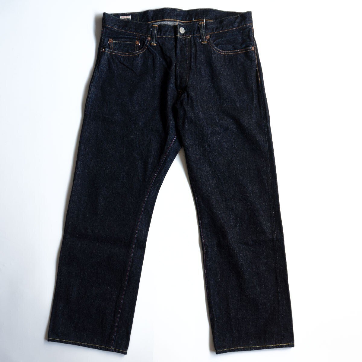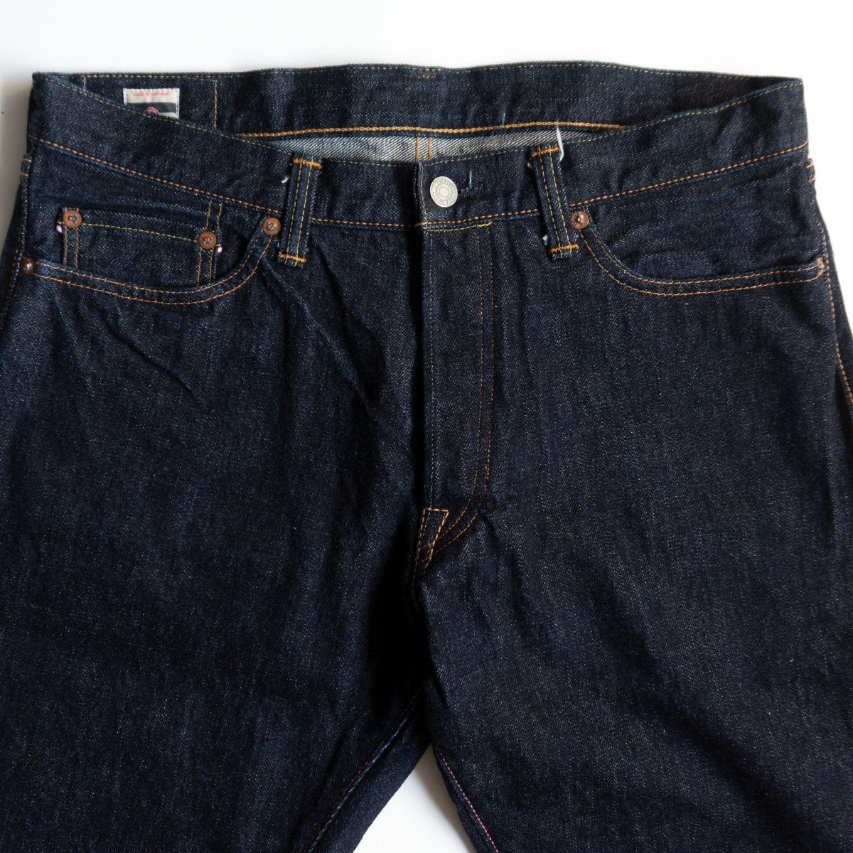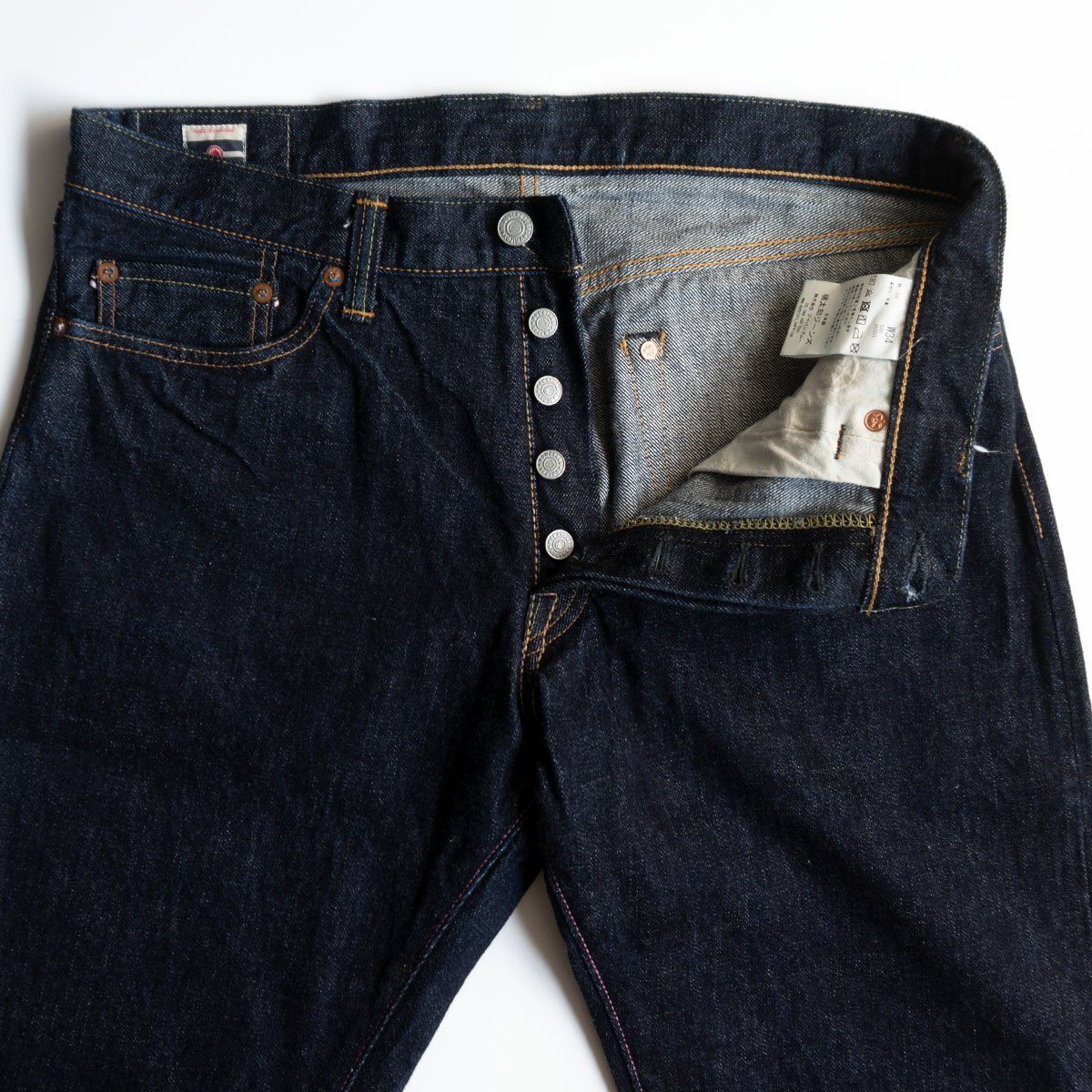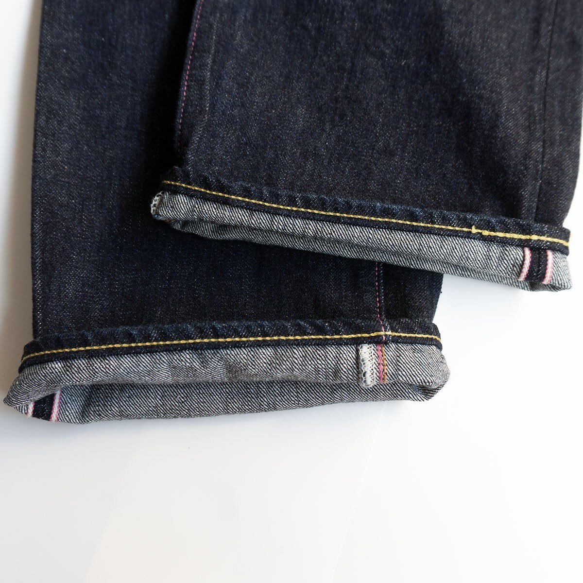 ロープ染色を繰り返し特濃インディゴブルーに染めたジンバブエコットン使用した1本。クラシックな雰囲気を残しつつすっきりとしたシルエット。股上がやや浅めで、太すぎず細すぎずのテーパードの入ったスリムストレートです。これから経年変化をお楽しみいただけます。