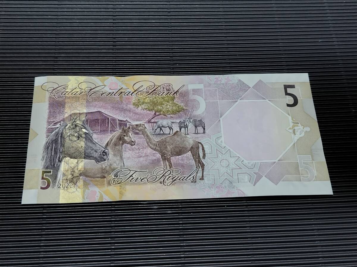 カタール 5 Riyals札  コレクション向きのピン札 2022年 未使用~甘い未使用  馬 ラクダ ガゼル p-W33 #/102 403271