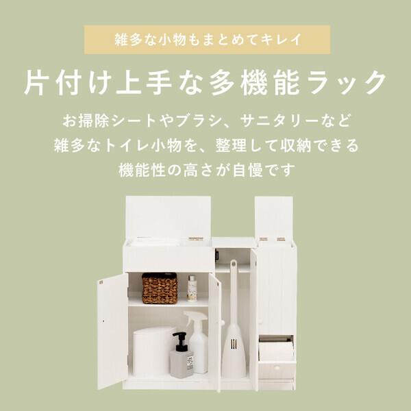 清潔なホワイト色の大容量トイレラック。 ペーパーロールやお掃除ブラシなどを清潔スッキリ収納。 ■本体サイズ:(約)幅60×奥行16×高さ52cm ■完成品 ■中国製 ■素材・成分:本体:MDF 着日指定をされる場合は、ご注文日の5日後から1か月以内での指定をお願い致します。 ************ 大型家具の場合 配送先地域によっては発送後8~10日ほどかかる場合があります ************ |