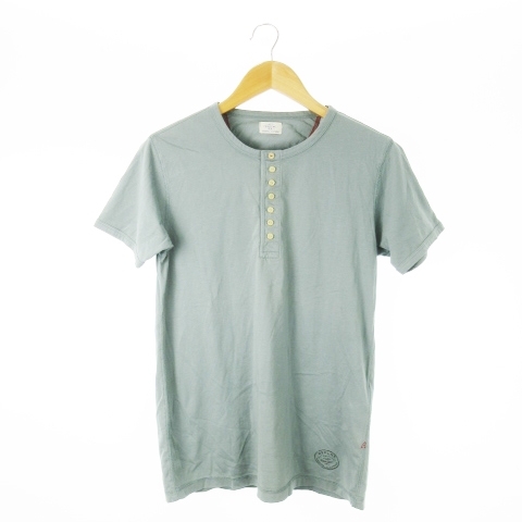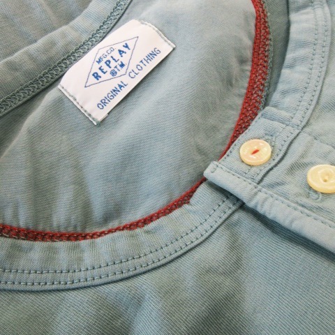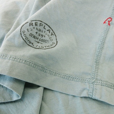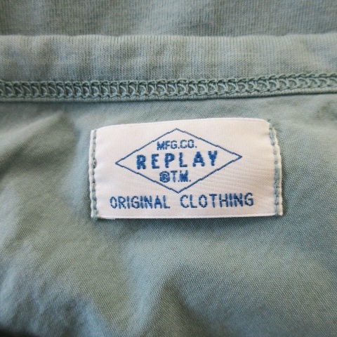 リプレイ REPLAY Tシャツ ヘンリーネック 半袖 薄手 ロゴ刺繍 ワンポイント 緑 グリーン /CK8 メンズ
