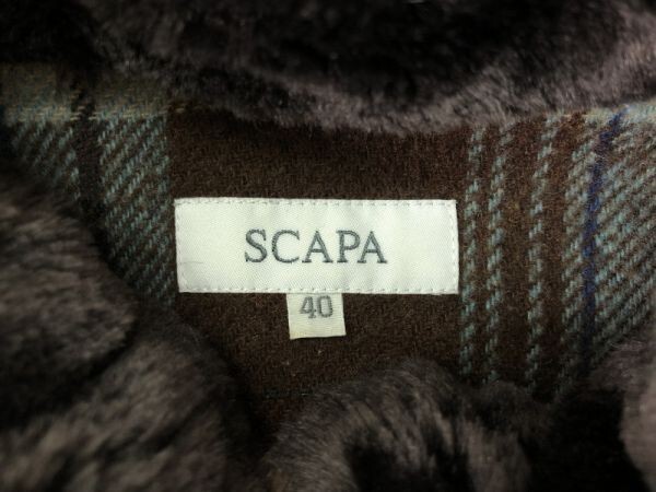 SCAPA スキャパ 英国トラッド カントリー レトロ 古着 比翼ボタン ジャケット レディース コットン100% 裏地チェックニット 襟ベルト 40 です。