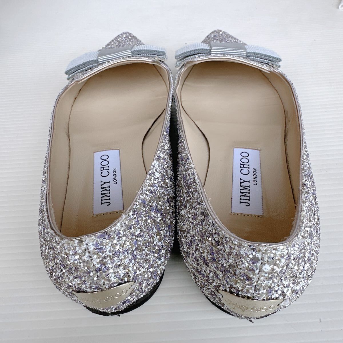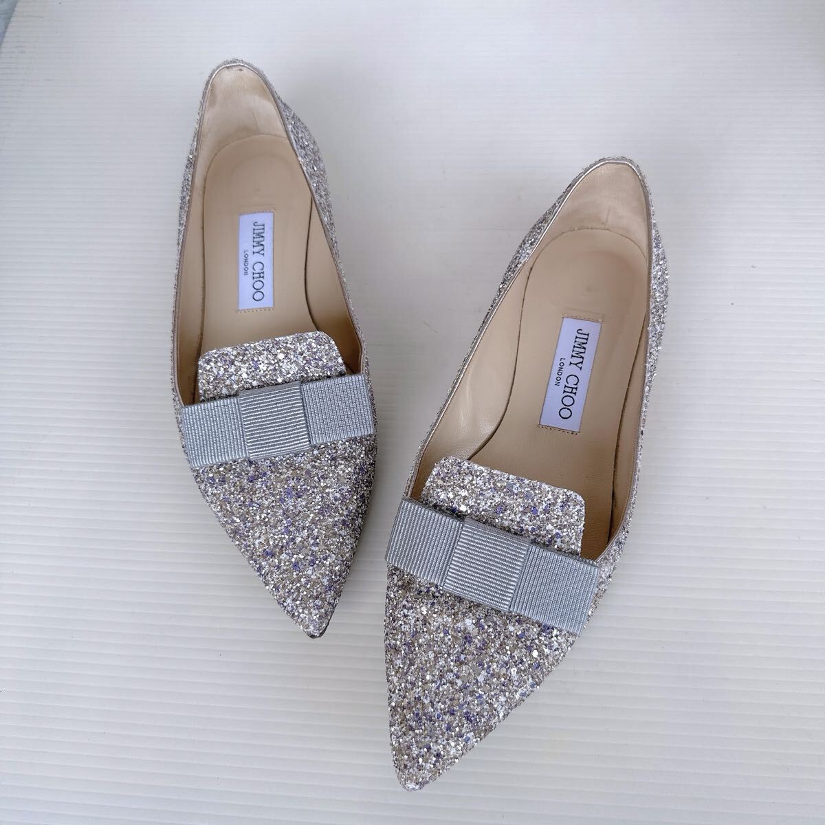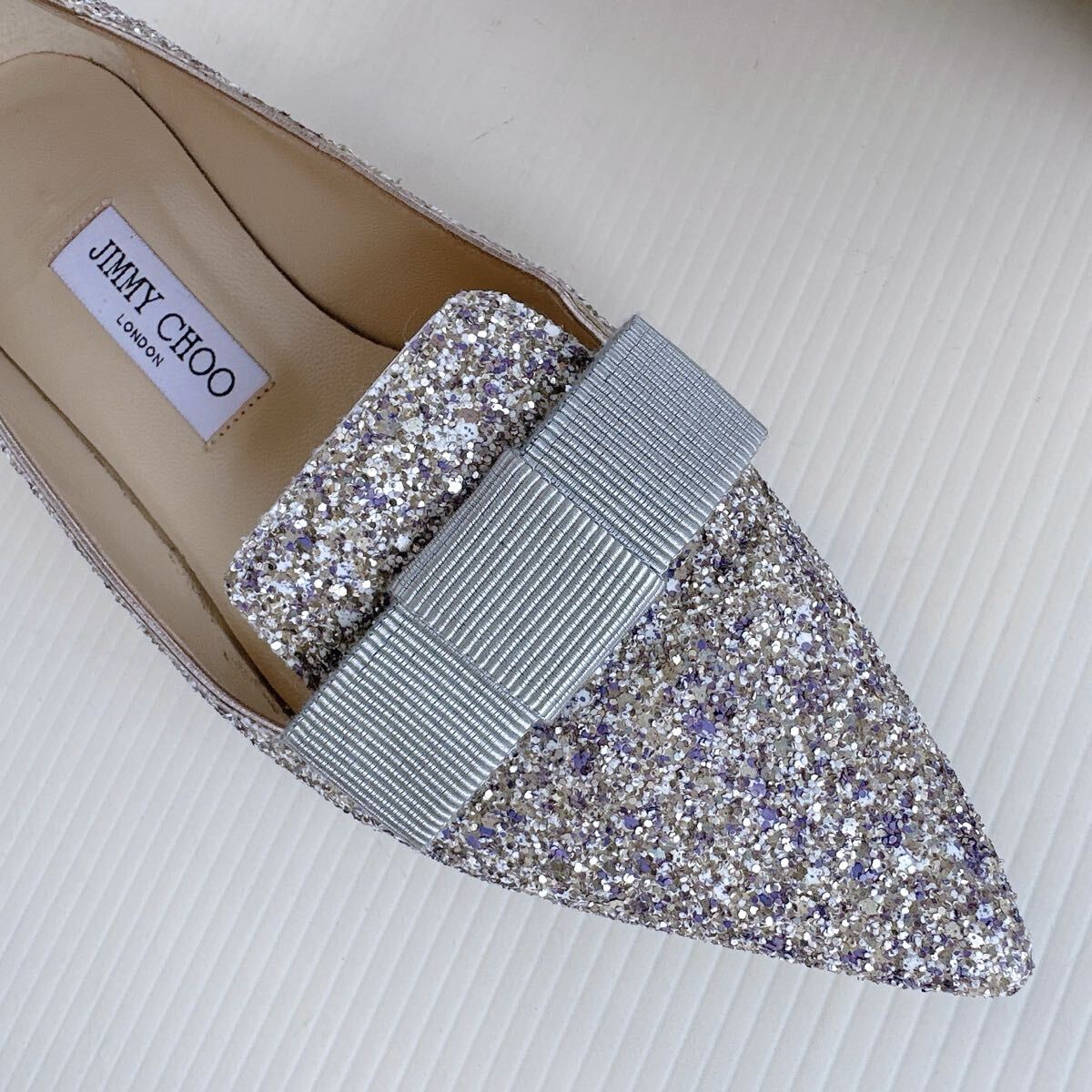 JIMMY CHOO ジミーチュウ FLAT キラキラ リボンモチーフ ポインテッドトゥ ローヒール ミュール サンダル バレリーナ バレエシューズ パンプス イタリア製 レーディス シューズ 靴