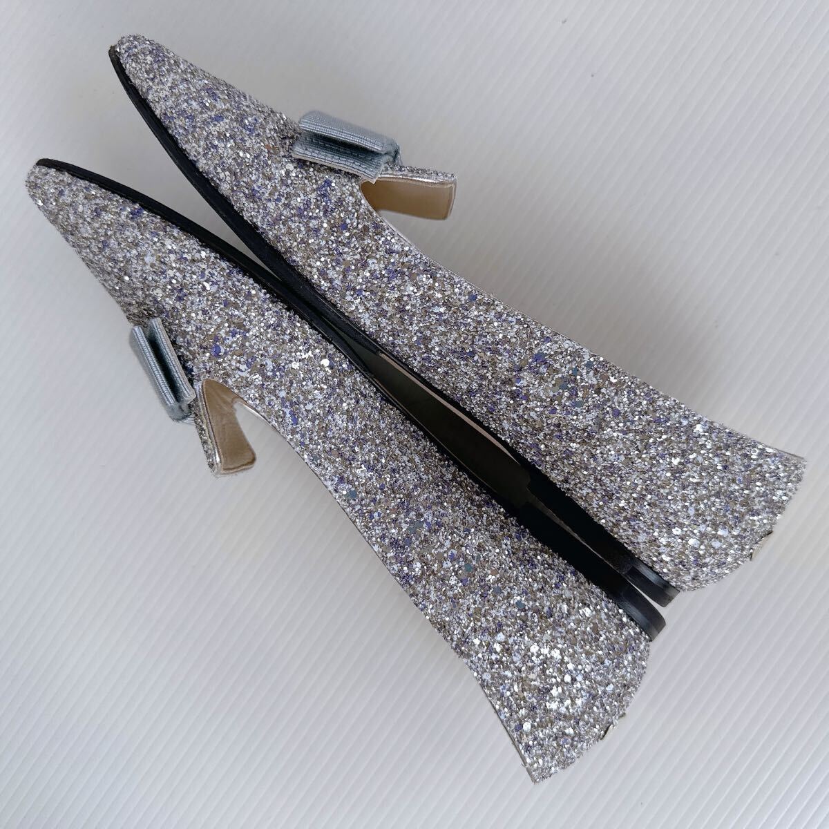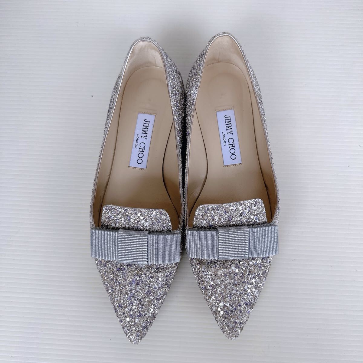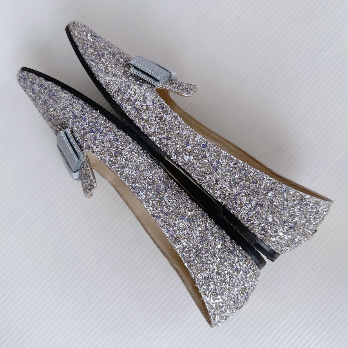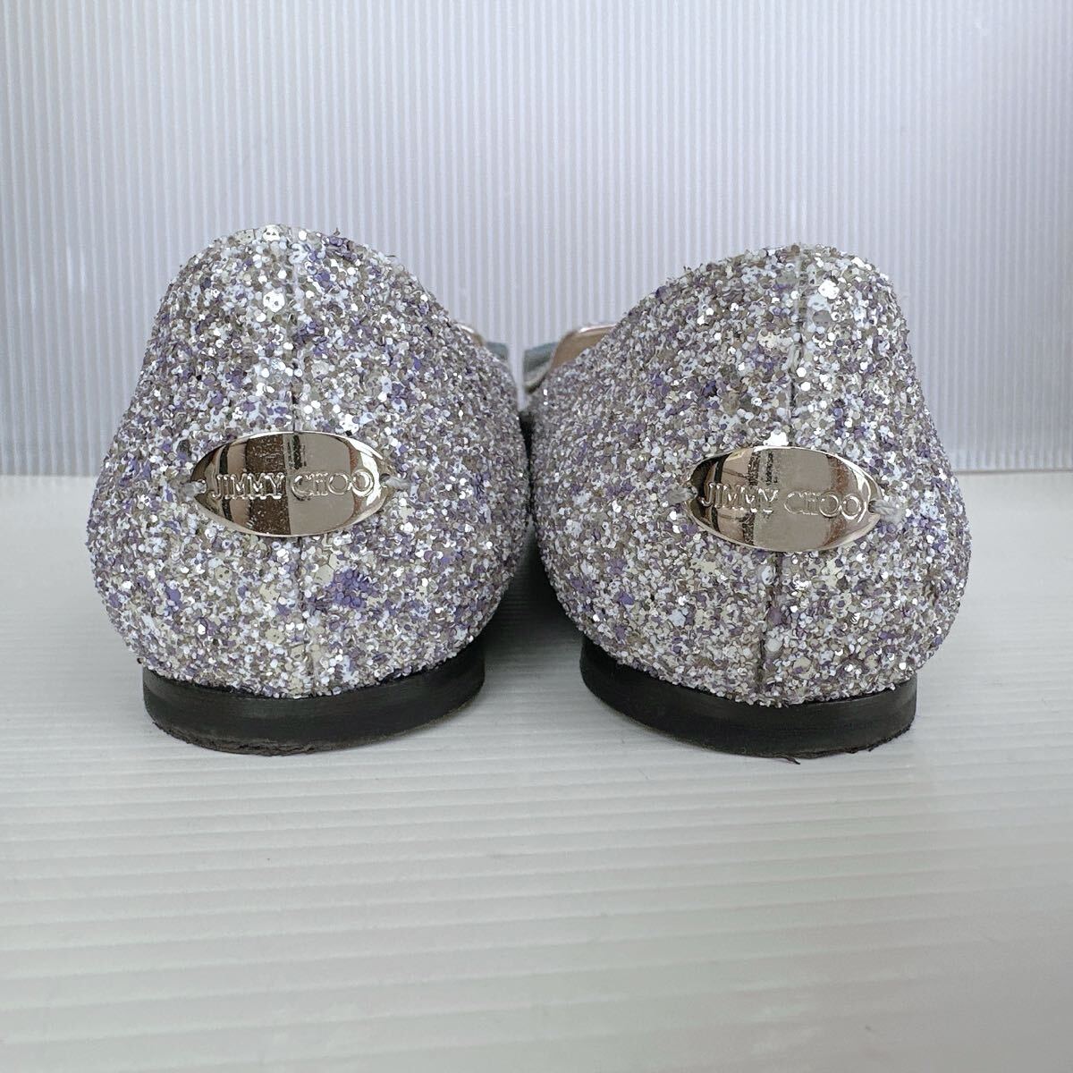 JIMMY CHOO ジミーチュウ FLAT キラキラ リボンモチーフ ポインテッドトゥ ローヒール ミュール サンダル バレリーナ バレエシューズ パンプス イタリア製 レーディス シューズ 靴