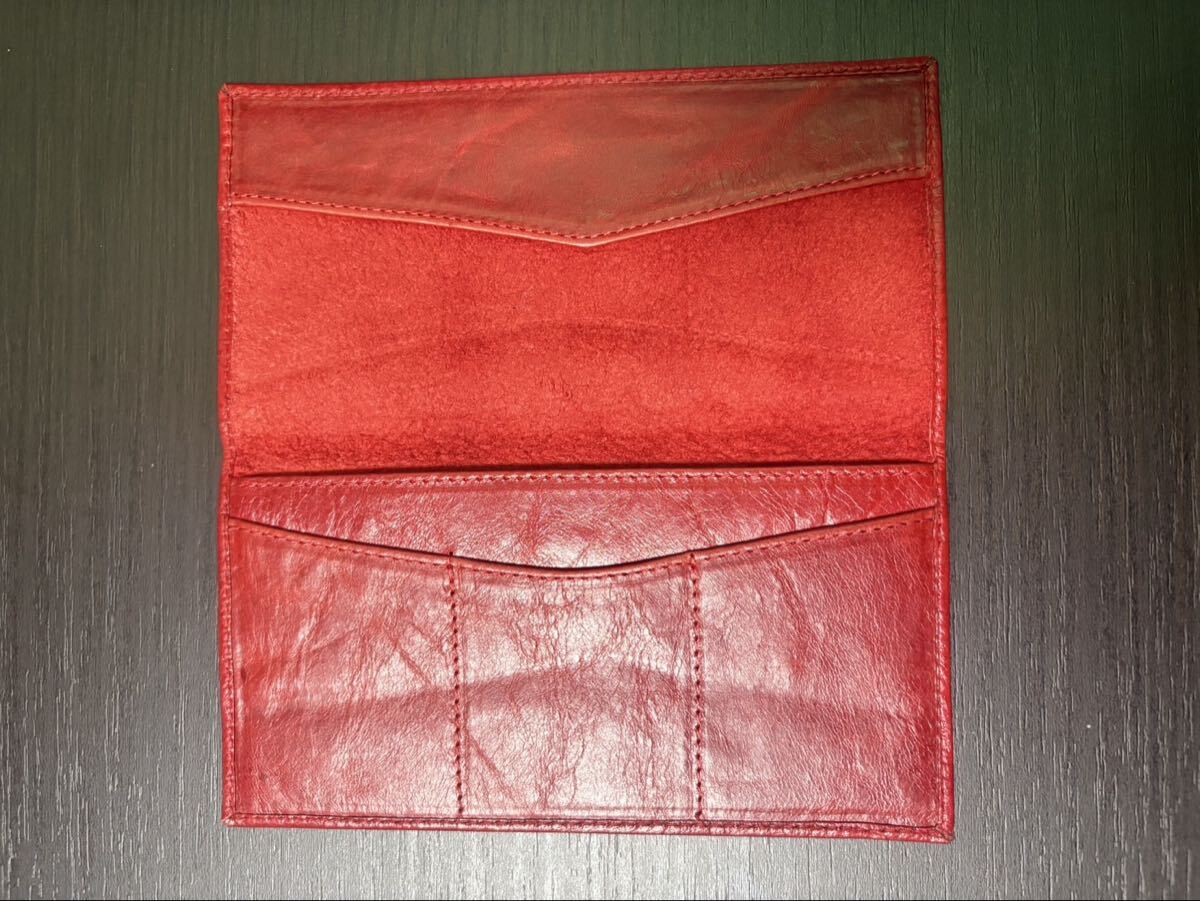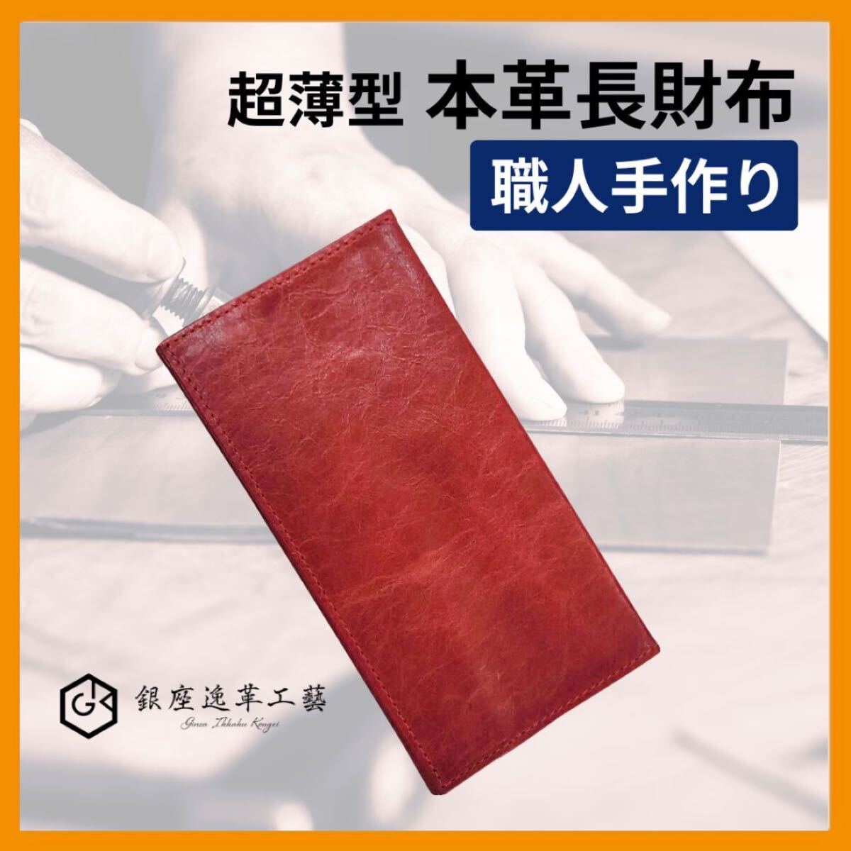 【本革 長財布 超薄長財布 手作り セカンド財布 レッド【銀座逸革工藝】】