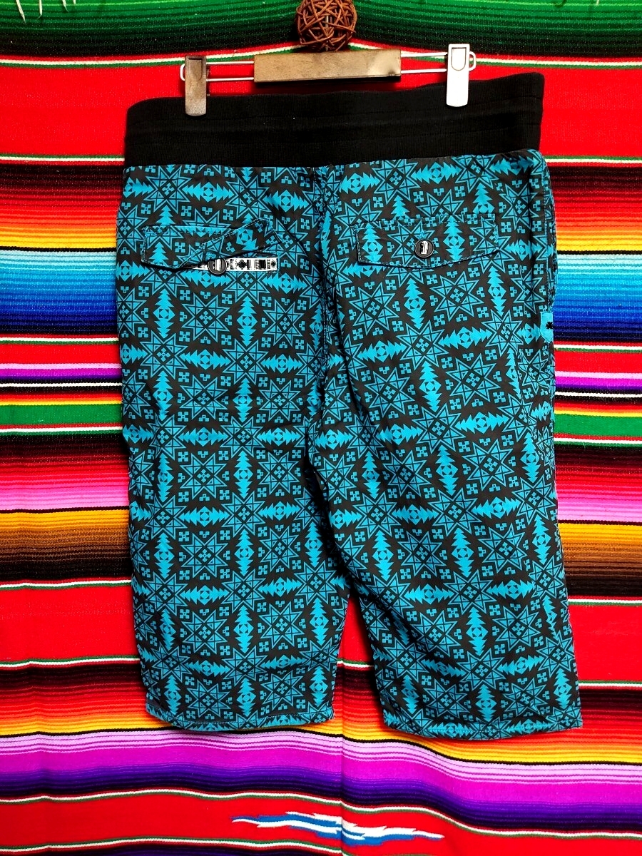 X'tyle エクスタイル クロステック ネイティブ チマヨ柄 イージーハーフパンツ Lサイズ ターコイズブルー ブラウン ブラック
