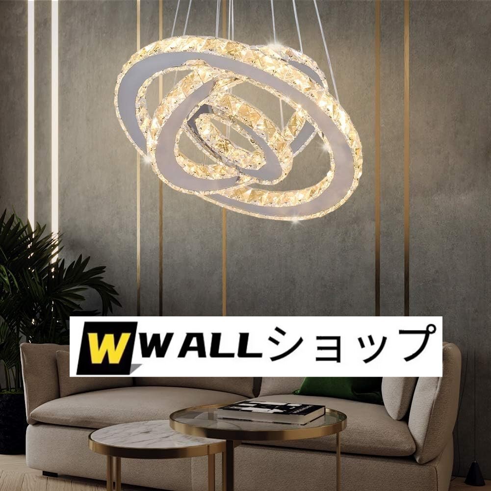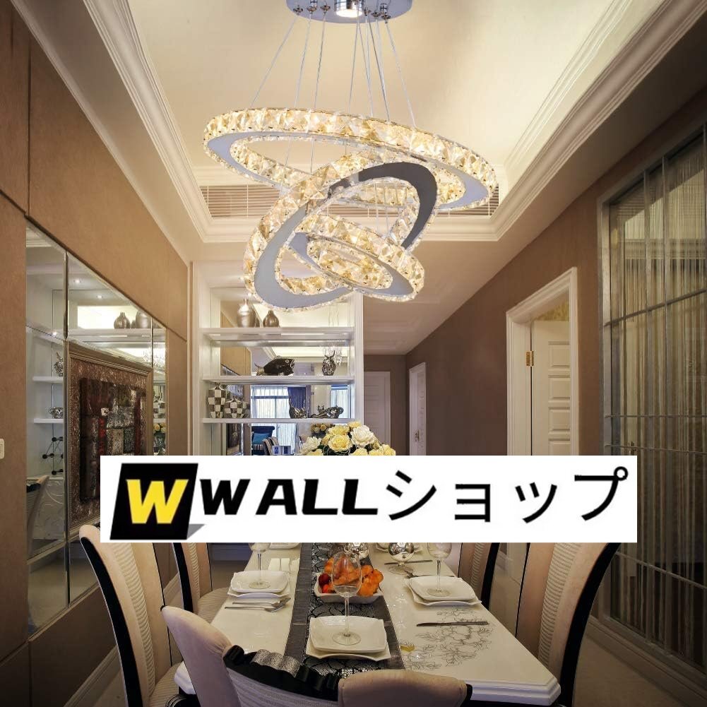 LEDシャンデリア 3リング LED天井照明器具 モダンクリスタルシャンデリア 調節可能なステンレススチールペンダントライト (色変更可能)