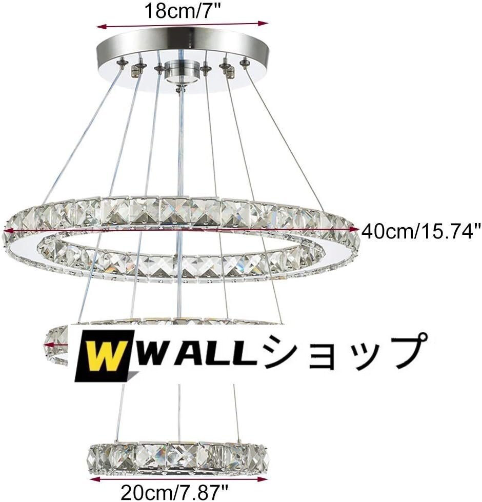 シャンデリアリングサイズ直径:7.9”+11.8”+15.7”; 最大吊り下げ: 高さは11.8”から47.2”まで調整可能。