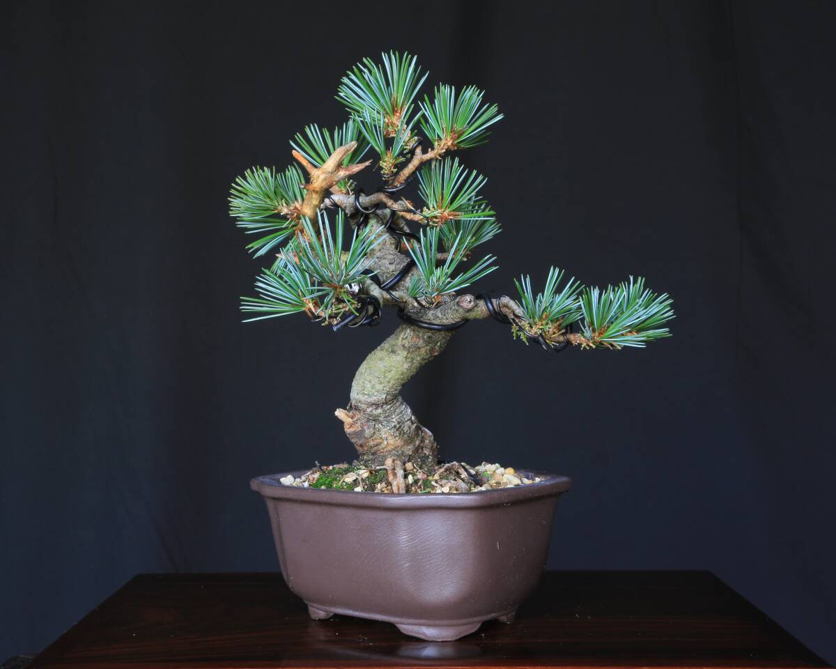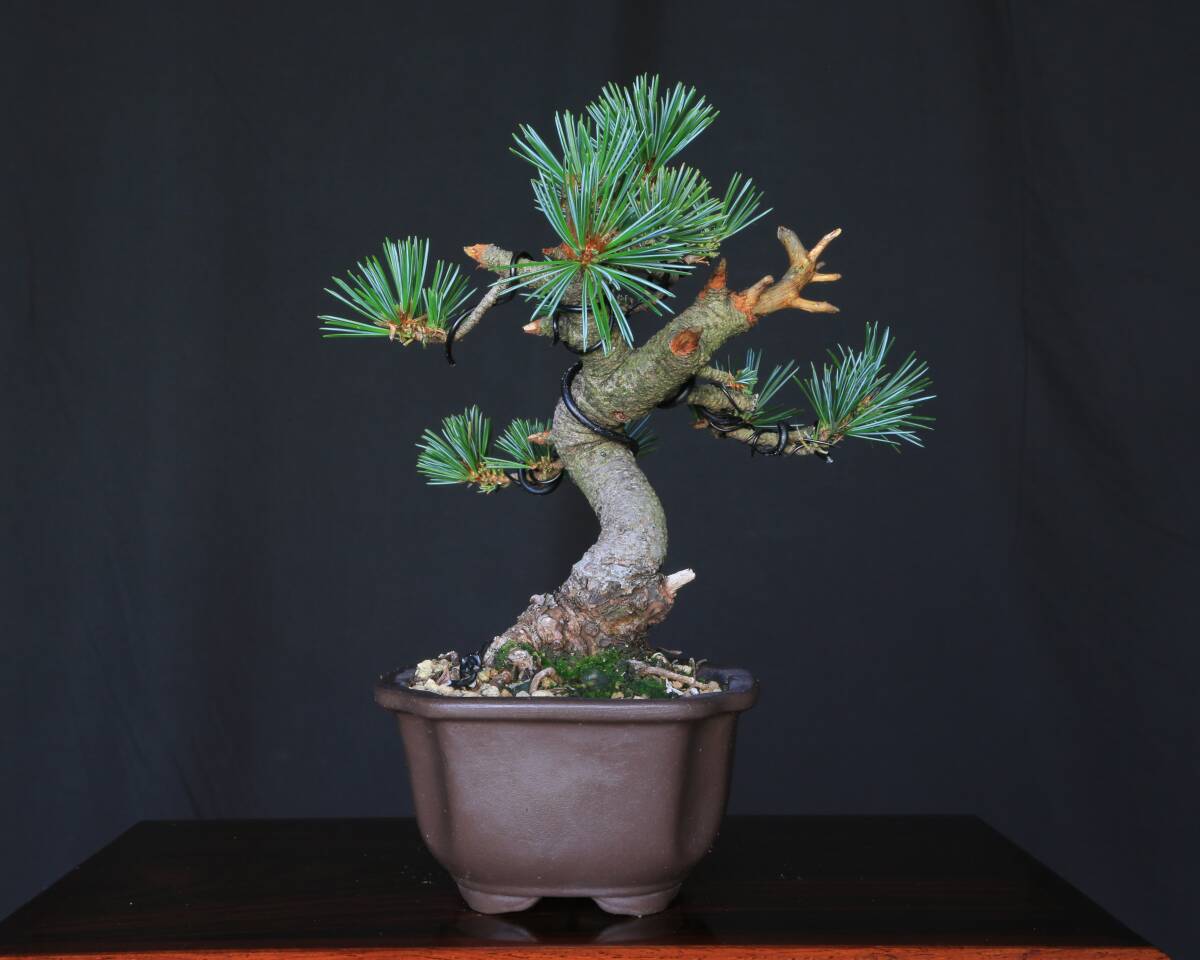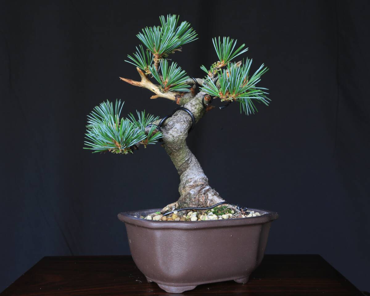 吾妻五葉松【大巓性】の小品盆栽になります。 葉性抜群で芽を持ちやすいのが特徴です。 育ちは比較的遅く太りにくい為、小品盆栽向きの性と言えます。 根元や立上がりからの幹模様が良く将来性抜群の一樹です。