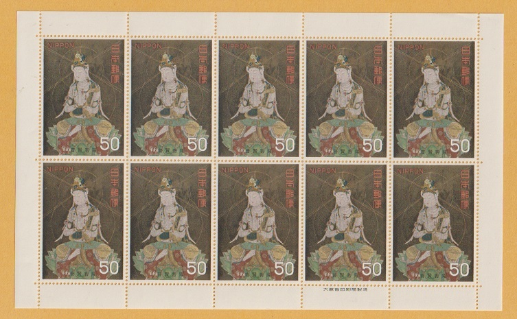 ●【記念切手】第1次国宝シリーズ 平安時代《50円》 ふけんぼさつ(シート)1968年 未使用