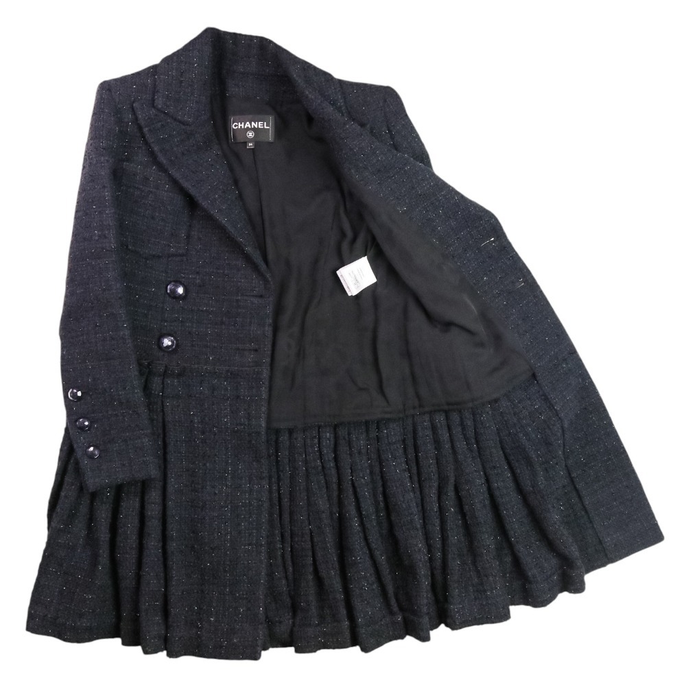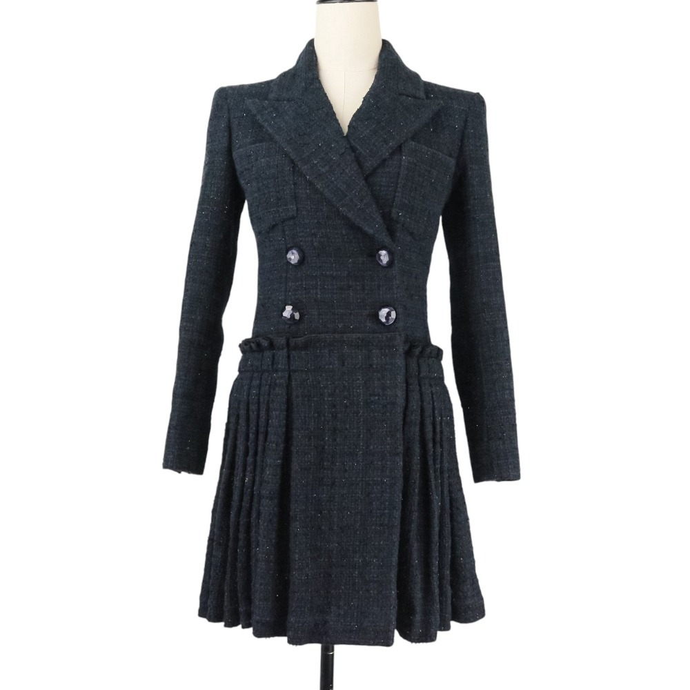 商品名:20SS CHANEL シャネル ルック掲載 ココマーク ツイード ダブルブレスト ジャケット ワンピース P64017 サイズ34 ネイビー