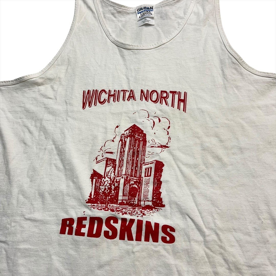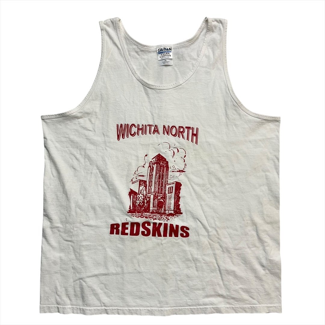 Vintage 90s GILDAN ギルダン ウィチタ ノース スクール レッドホークス タンクトップ メンズ XL ホワイト 古着 ノースリーブ ヴィンテージ serb9171
