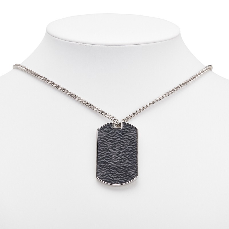 ルイ ヴィトン モノグラム エクリプス コリエ プラーク ネックレス M63640 シルバー ブラック メタル PVC メンズ LOUIS VUITTON 【中古】