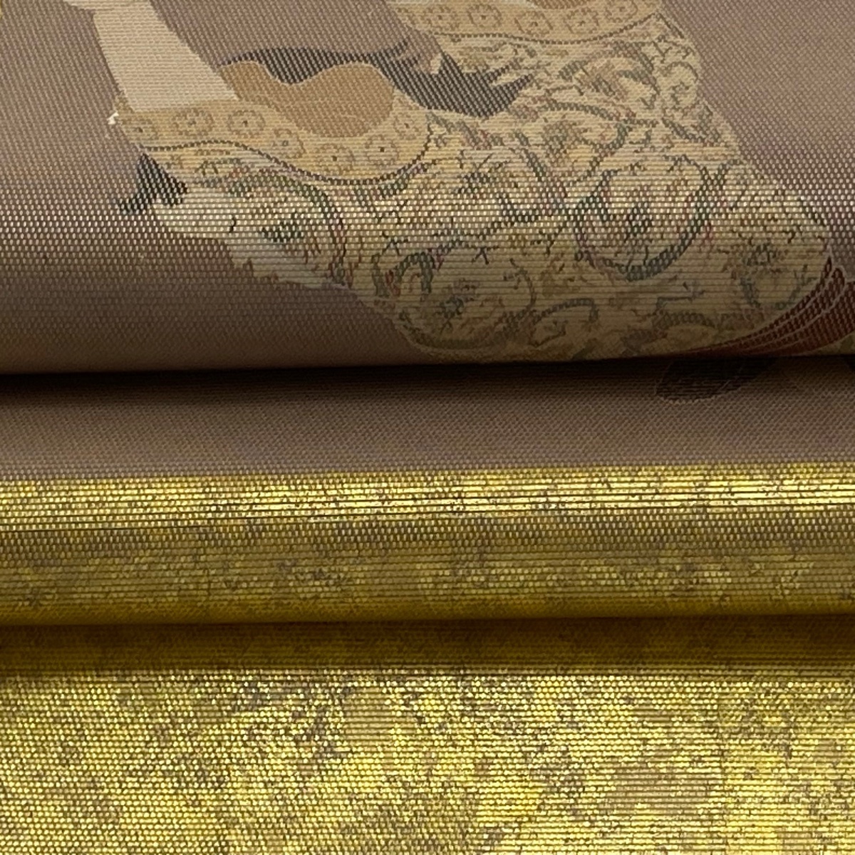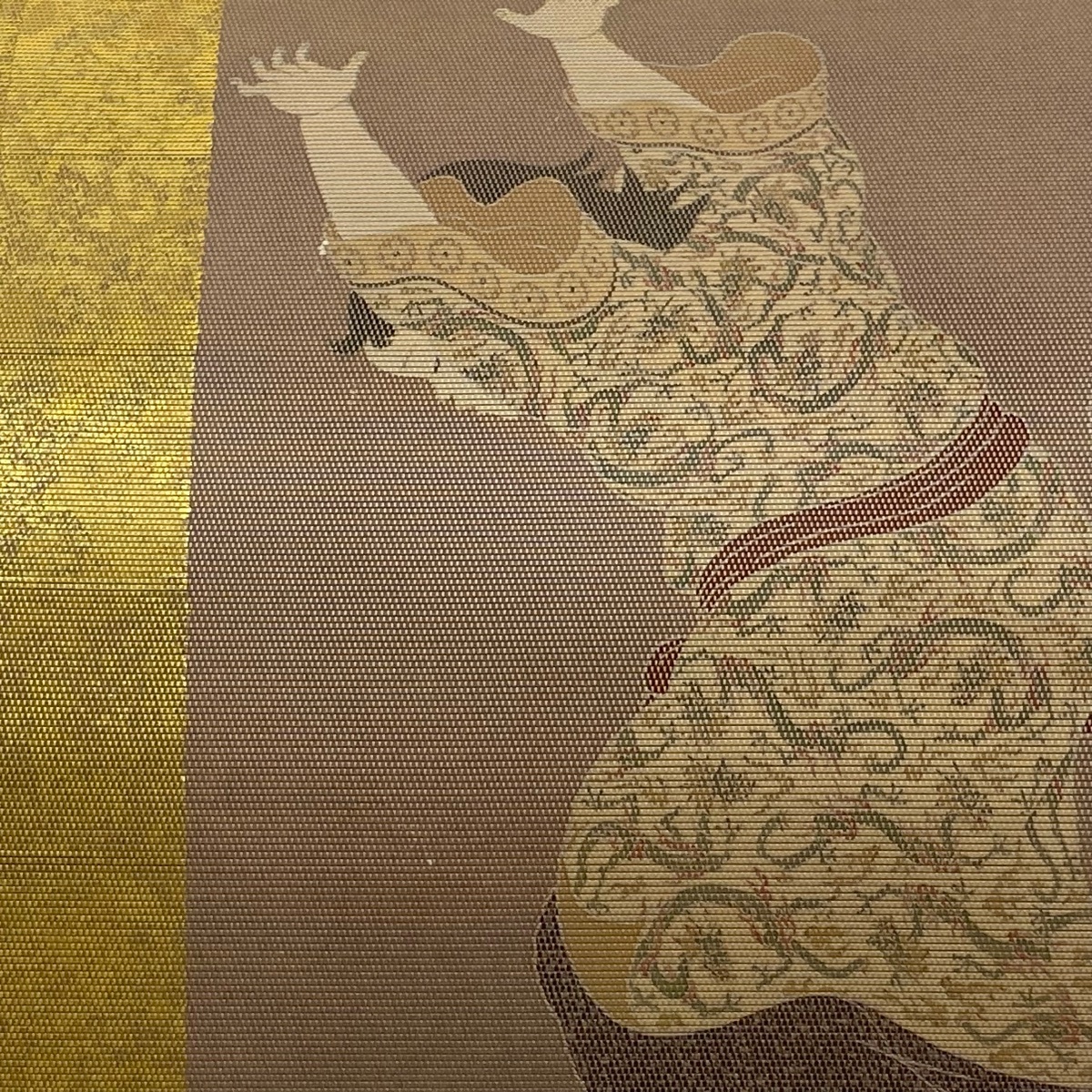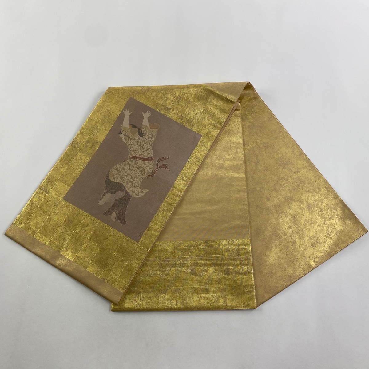 | 袋帯 美品 逸品 由水十久 落款 人物 箔 金色 お太鼓柄 正絹 【中古】 |