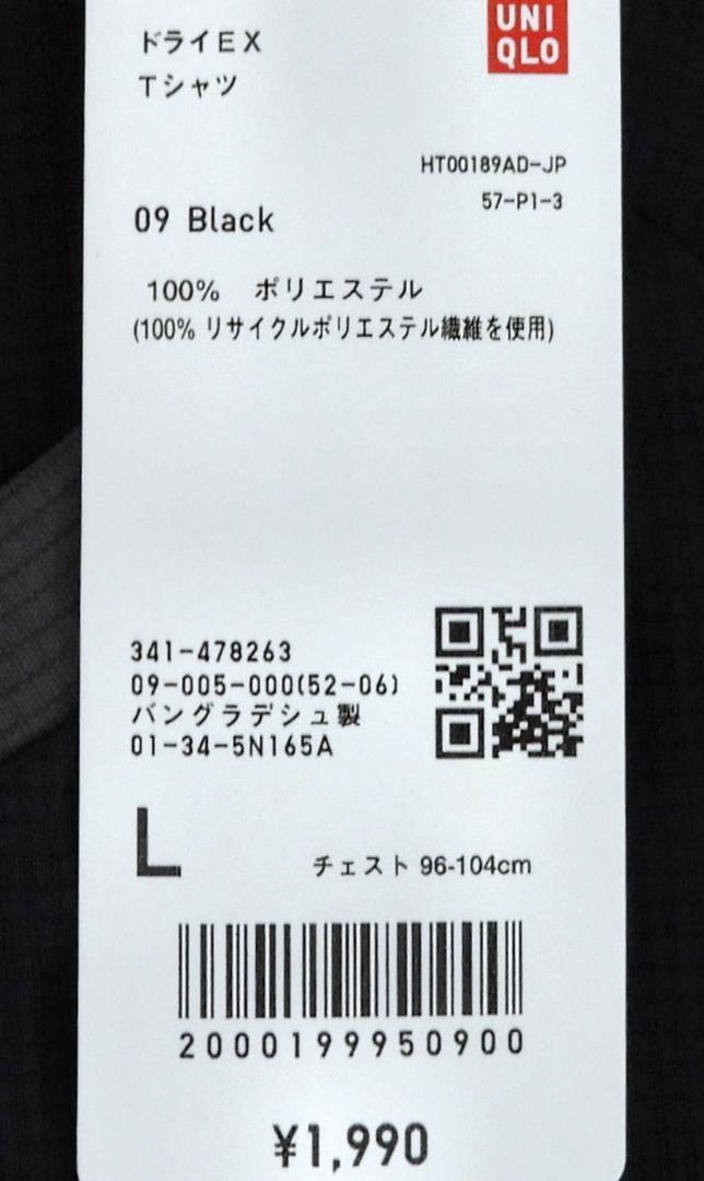 ユニクロ UNIQLO ドライEX Tシャツ 半袖 メンズ Lサイズ ブラック【新品未使用】