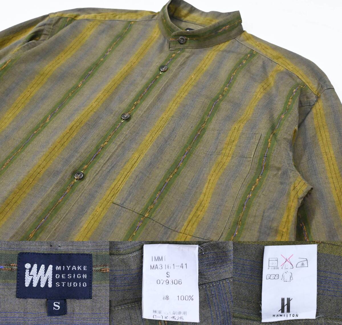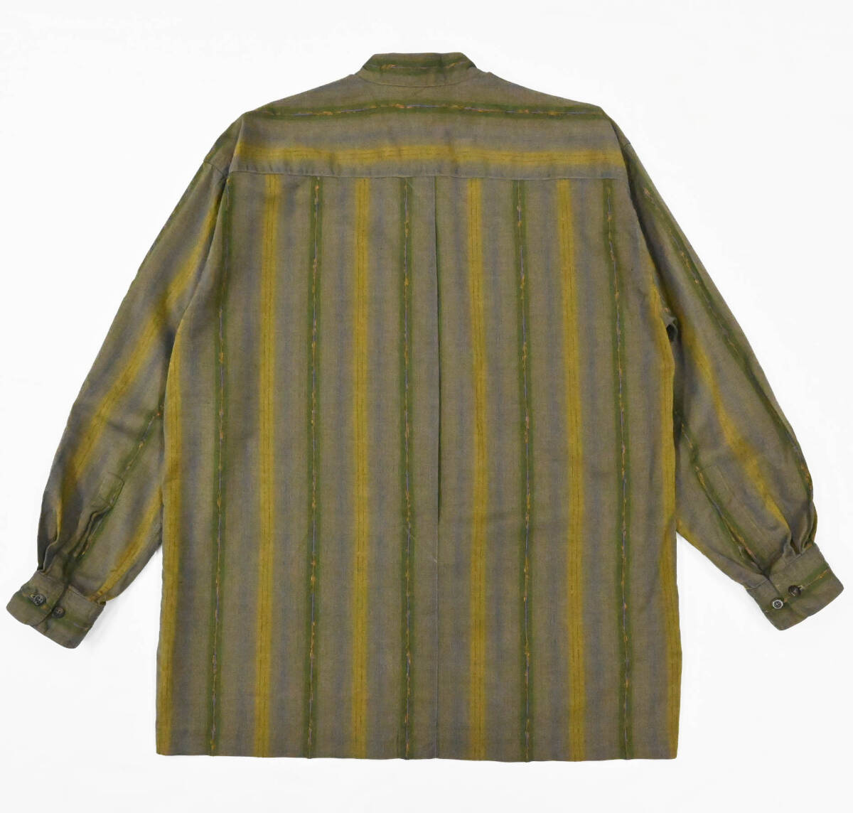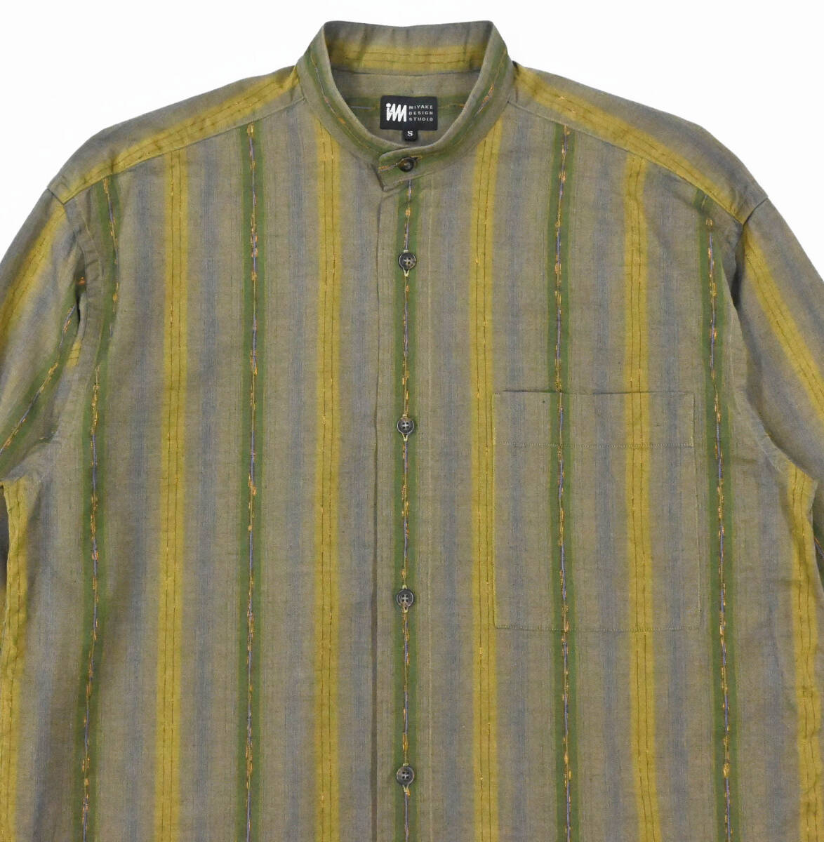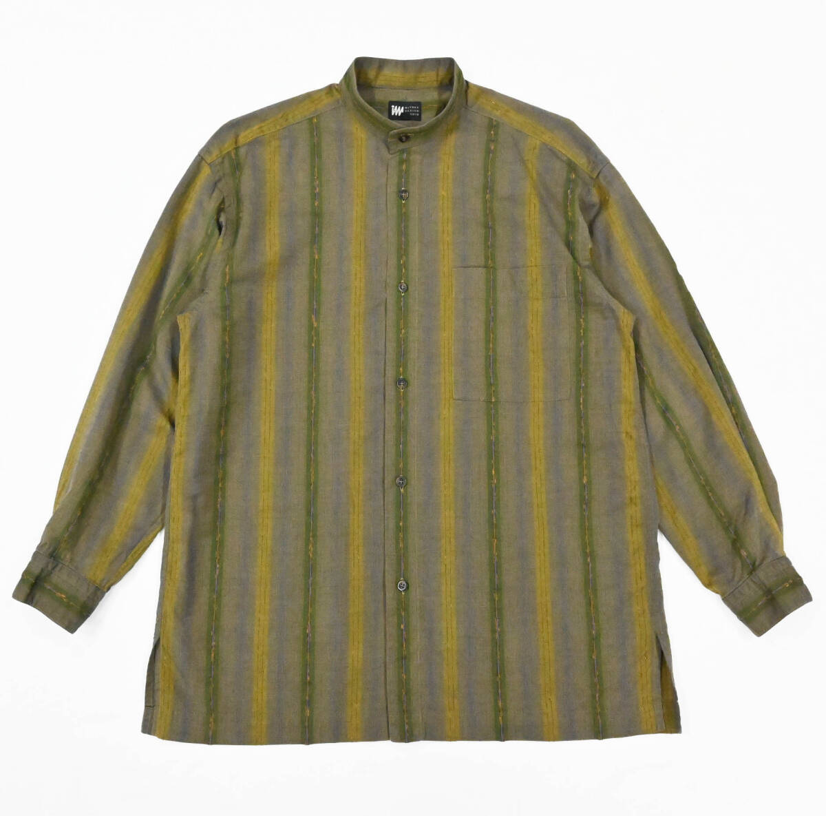 R454★良品 80's~90's イッセイミヤケ im MIYAKE DESIGN STUDIO ミヤケデザインスタジオ 総柄 長袖 バンドカラーシャツ S 緑系 ハミルトン