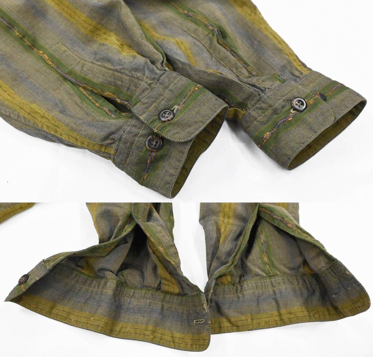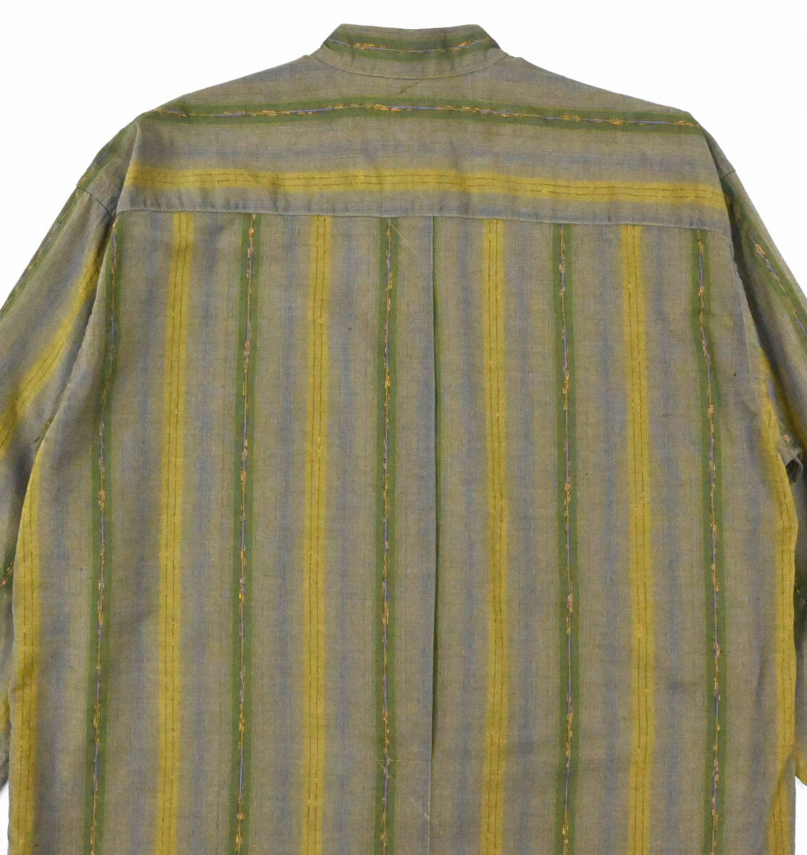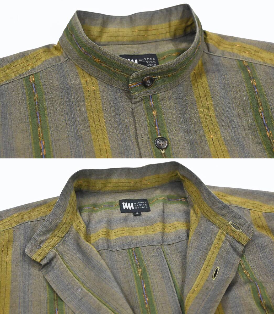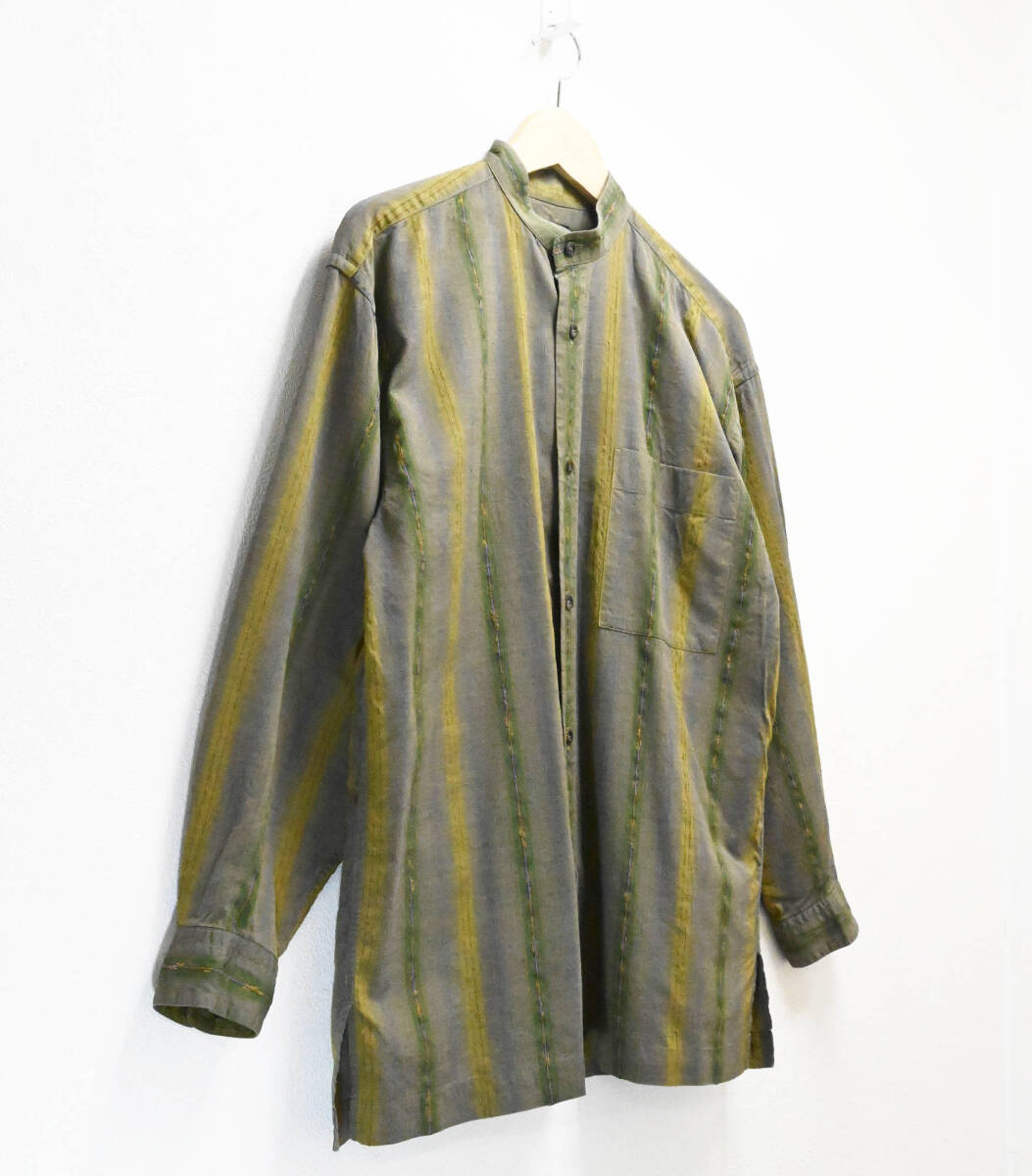 R454★良品 80's~90's イッセイミヤケ im MIYAKE DESIGN STUDIO ミヤケデザインスタジオ 総柄 長袖 バンドカラーシャツ S 緑系 ハミルトン